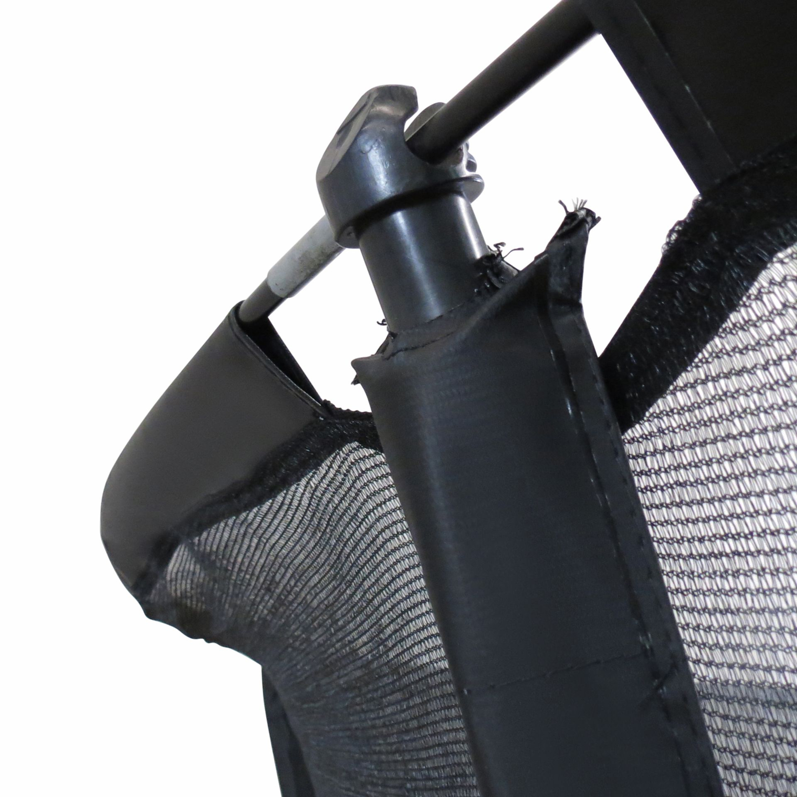 Trampoliini saab paigaldada nii jalgadele kui ka maa sisse, pakkudes paindlikkust vastavalt teie aia vajadustele. Must turvavõrk lukuga kaitseb lapsi väljalangemise eest, võimaldades neil turvaliselt uusi trikke harjutada.