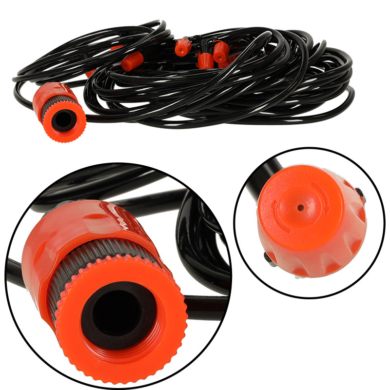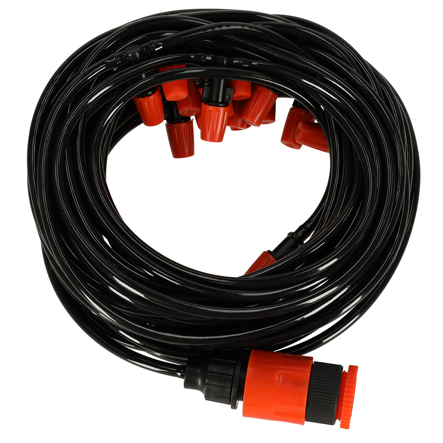 Selle veepihusti kasutamine on lihtne – ühendage see lihtsalt aiavoolikuga või kraaniga, et nautida jahedat veemõõku. Sobib suurepäraselt taimede kastmiseks ja aia jahutamiseks. Vooliku saab paigutada kuhu iganes – põõsaste vahele, lamamistoolide lähedusse, kasvuhoonesse või puude vahele.