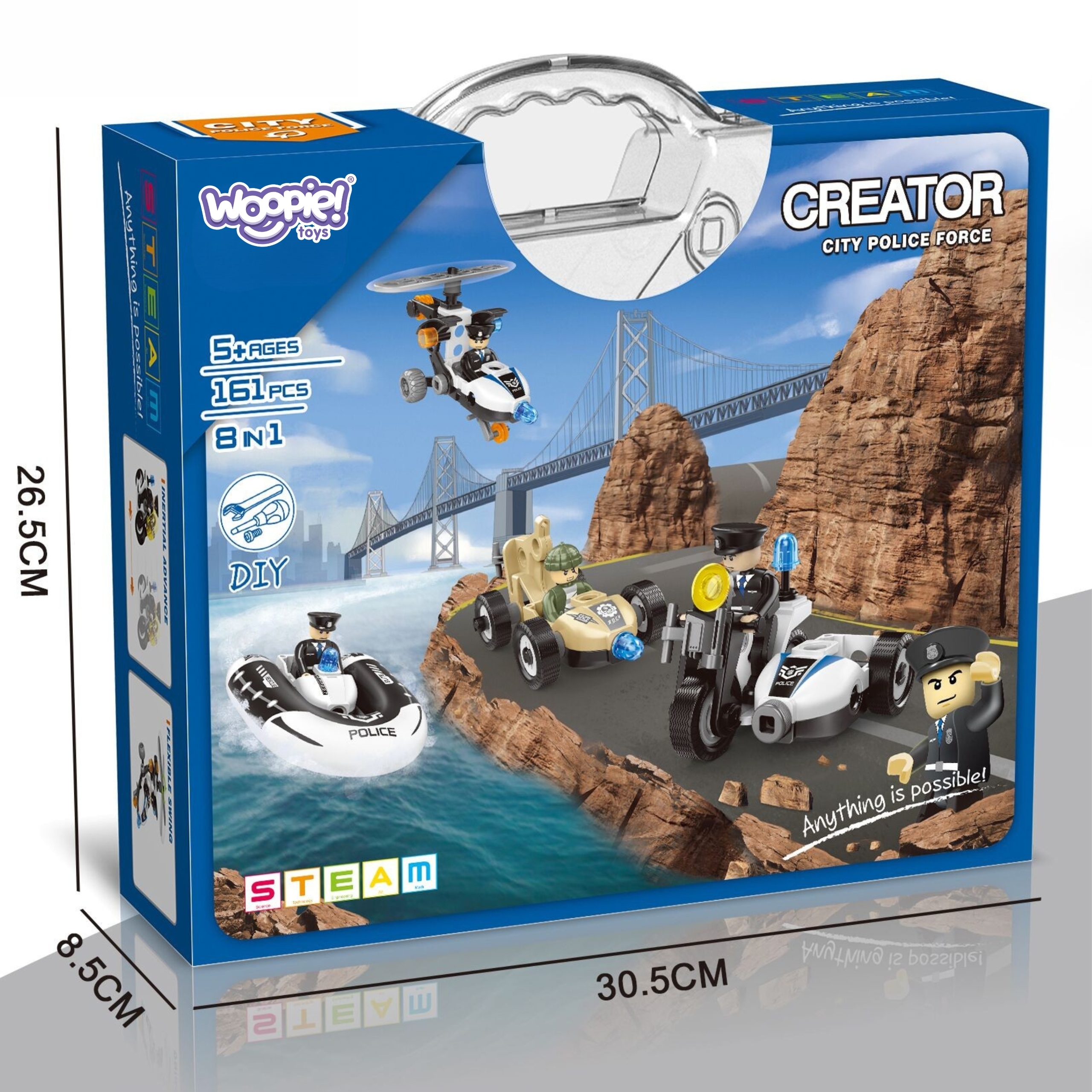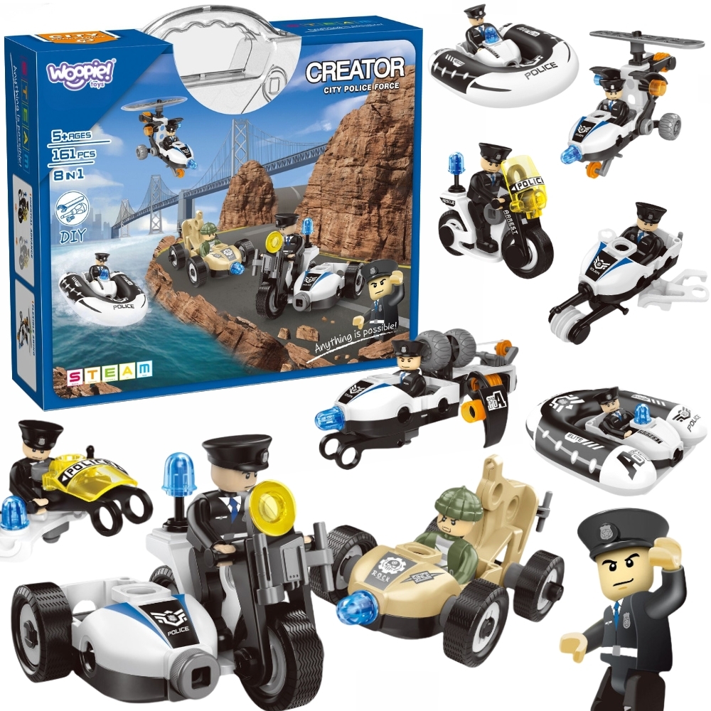 See politseisõidukite ehitamise komplekt pakub lastele võimalust astuda julge politseiniku rolli ja ehitada iseseisvalt erinevaid sõidukeid nagu mootorrattad, maastikuautod, paadid ja ATV-d. See on suurepärane meelelahutus, mis arendab loovust, õpetab loogilist mõtlemist ja pakub tunde lõbu. Ideaalne kingitus ehitamise ja politsei fännidele, mida saab mugavalt kõikjale kaasa võtta.