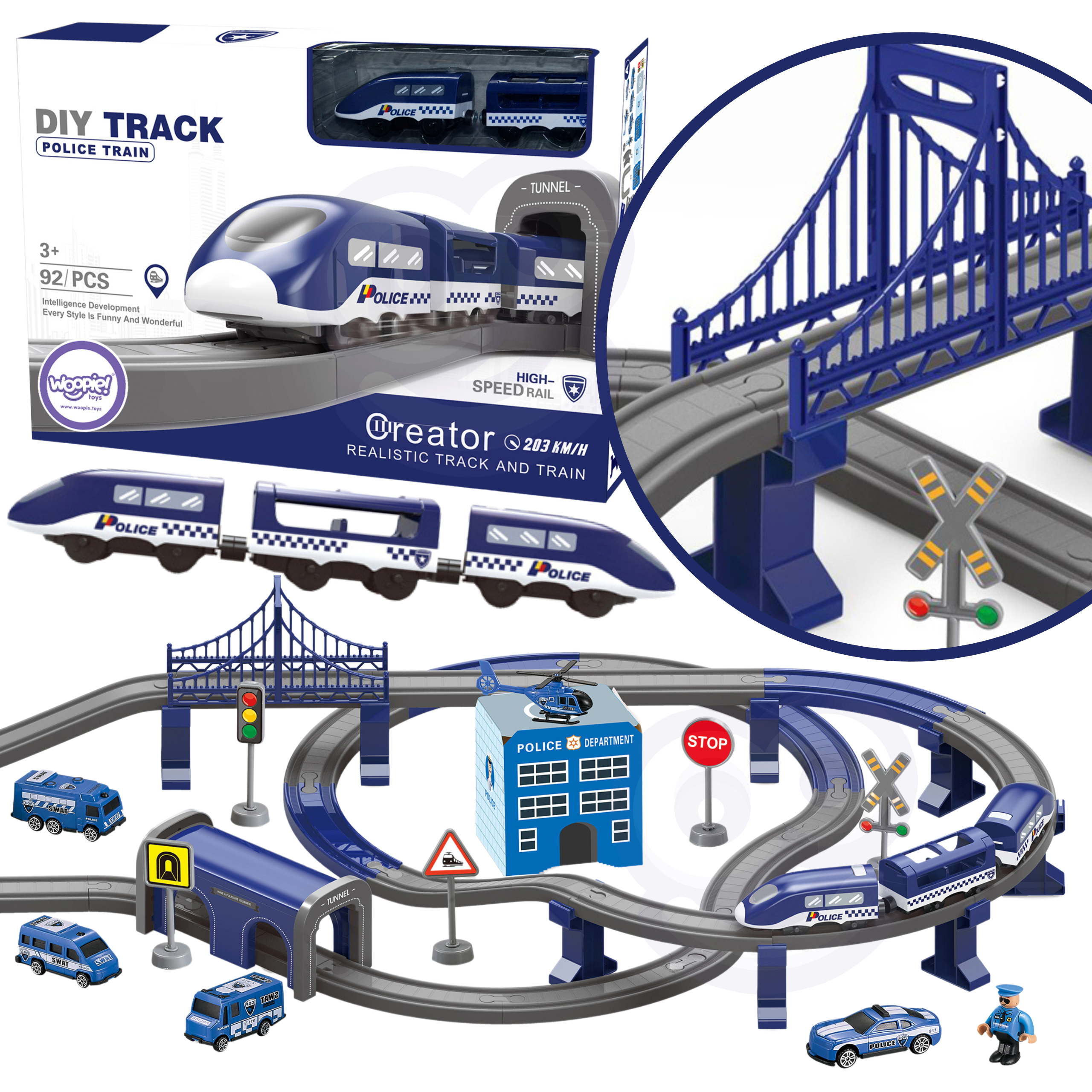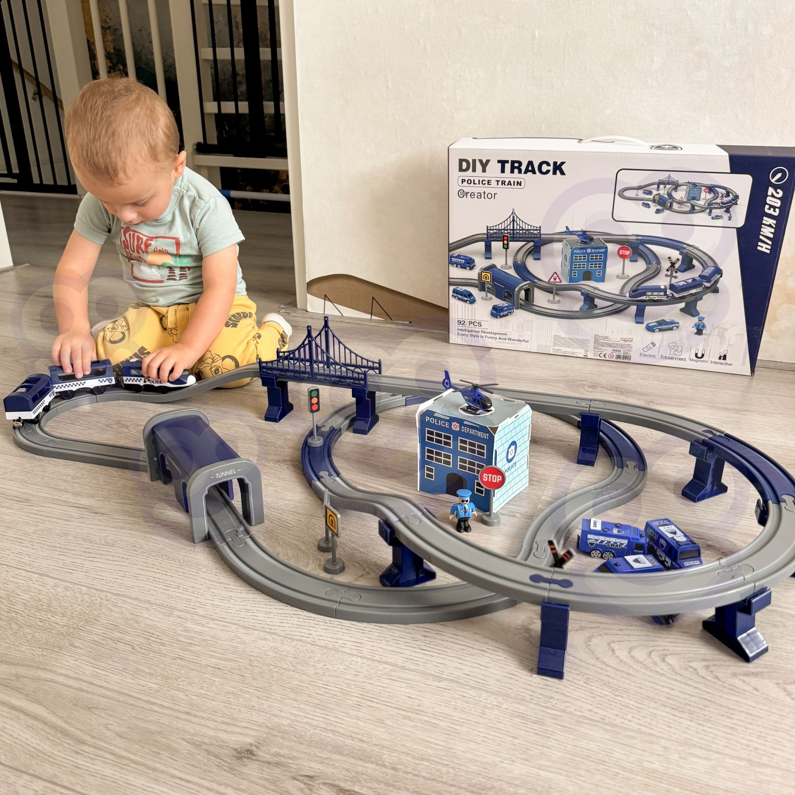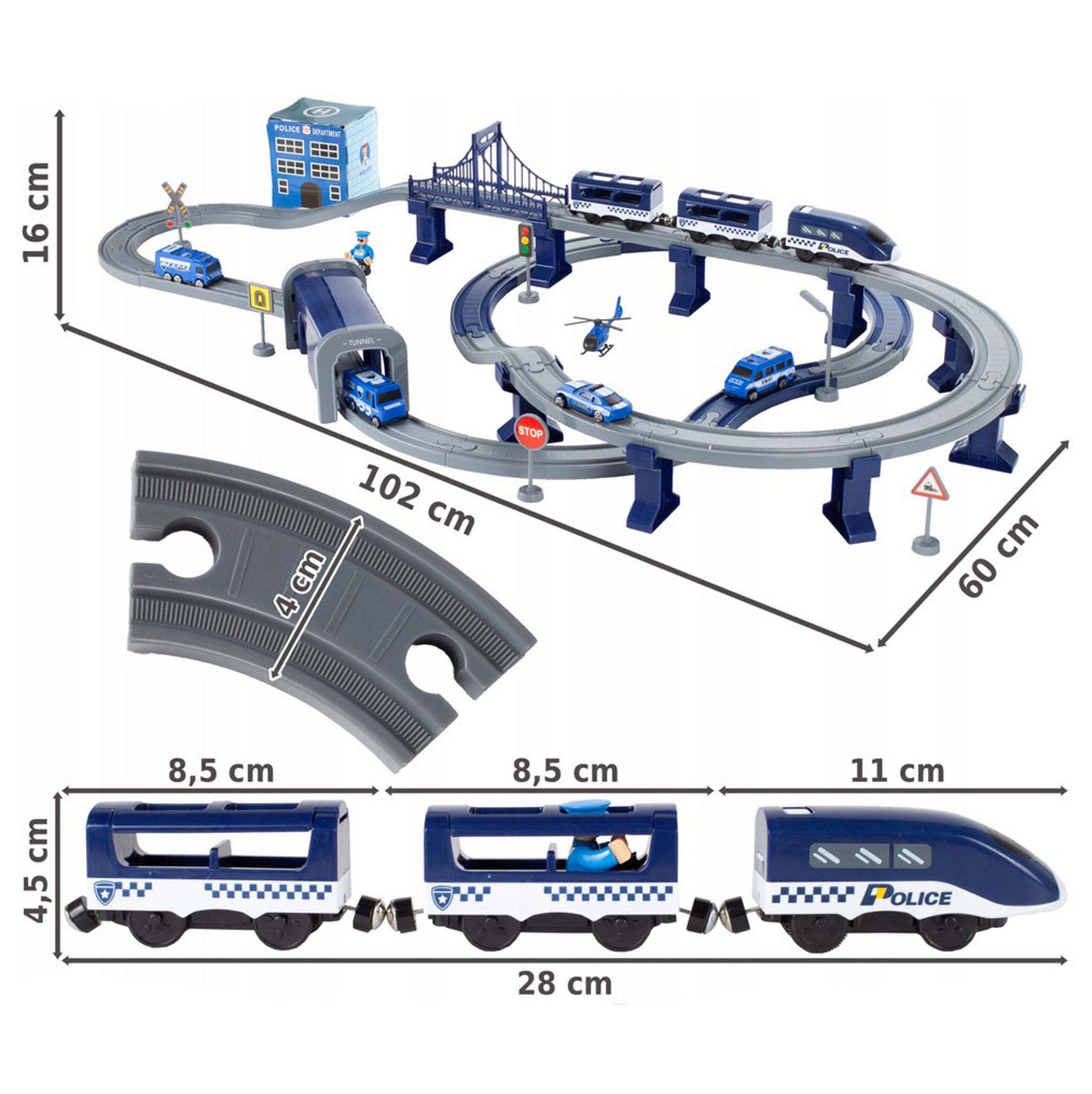 See elektriline politseijaama rongikomplekt on ideaalne valik väikestele autohuvilistele, pakkudes lõputut rõõmu ja seiklust. Komplekt sisaldab 92 elementi, sealhulgas kaasaegset patareidega töötavat vedurit, politseiautosid ja helikopterit. Mänguasi arendab lapse ruumilist orientatsiooni, tehnilist mõtlemist ja kujutlusvõimet.