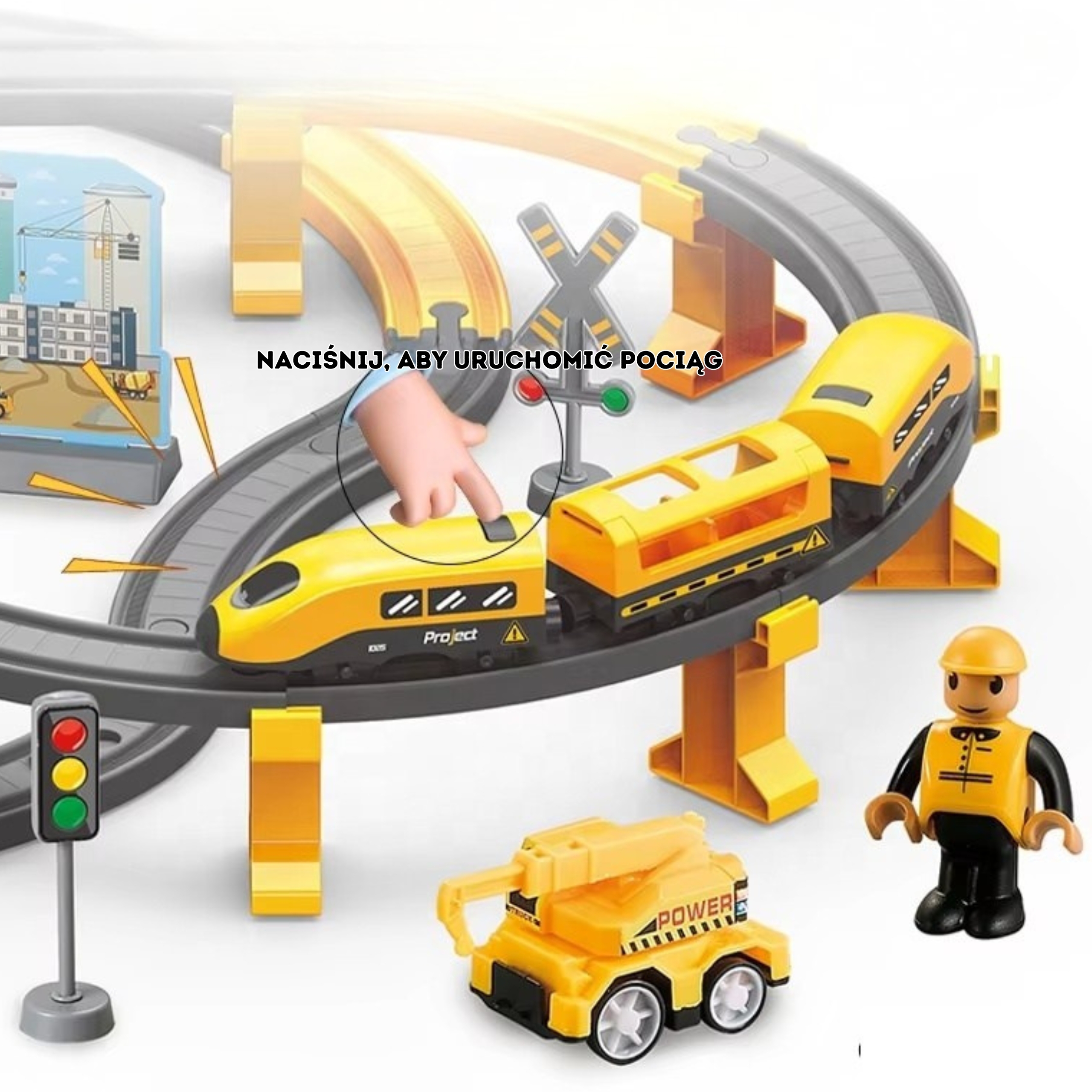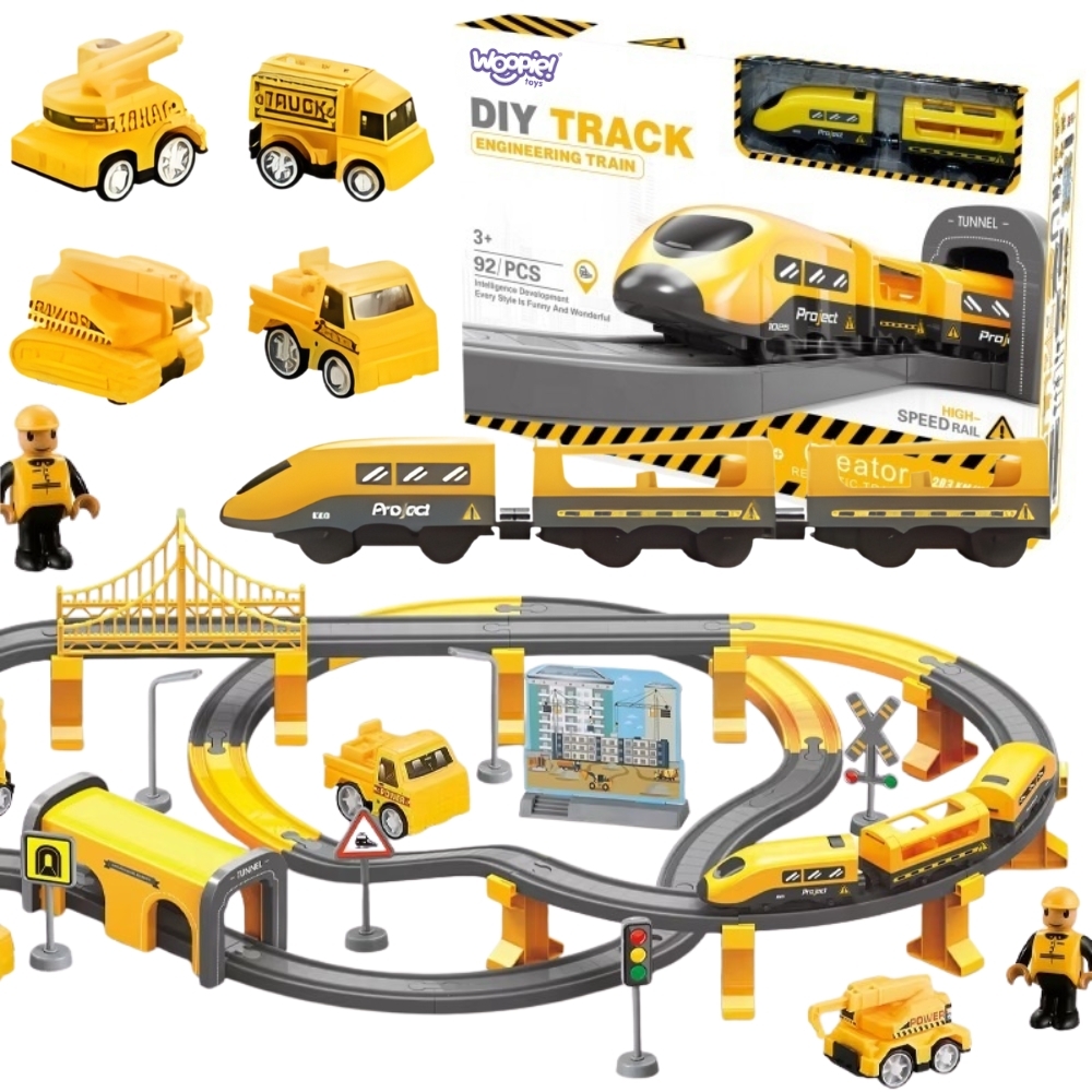 Elektriline rongikomplekt on ideaalne mänguasi väikestele ehitajatele, pakkudes lõputuid võimalusi loovaks mänguks ja arendades samal ajal lapse kujutlusvõimet. Komplekt sisaldab kollast elektrilist rongi, mis koos realistlike heliefektidega viib lapsed põnevasse ehitusmaailma. Lapsed saavad ise luua erinevaid rongiradasid ja jälgida, kuidas rong nende loodud linnas liigub.