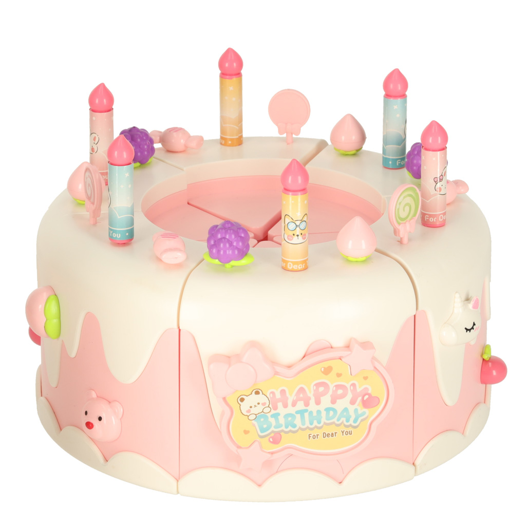 Mängutordi kasutamine on lihtne ja lõbus. Lapsed saavad lõigata tordi eraldi segmentideks, mis on kinnitatud takjapaelaga. Pärast patareide sisestamist hakkavad mängima rõõmsad meloodiad ja tort pöörleb, lisades mängule dünaamikat.