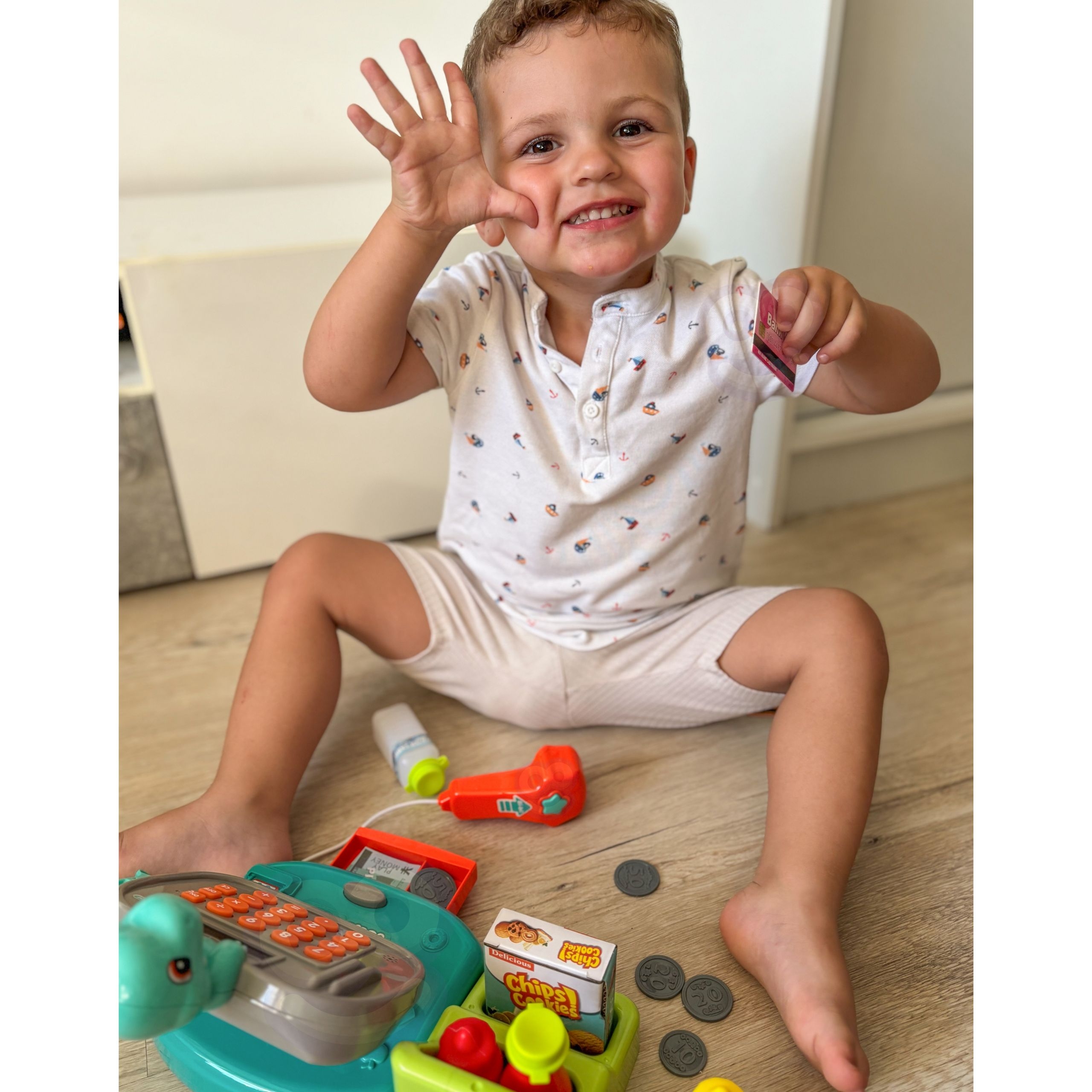 Interaktiivne kassa dinoaurusega on suurepärane valik lastele, kes armastavad mängida rollimänge. See värvikas komplekt muudab iga toa tõeliseks poeks, kus laps saab kehastuda müüjaks, kassapidajaks või kliendiks. Realistlikud funktsioonid nagu kalkulaator, heliefektidega triipkoodilugeja ja avanev rahasahtel muudavad mängu kaasahaaravaks ja õpetlikuks.