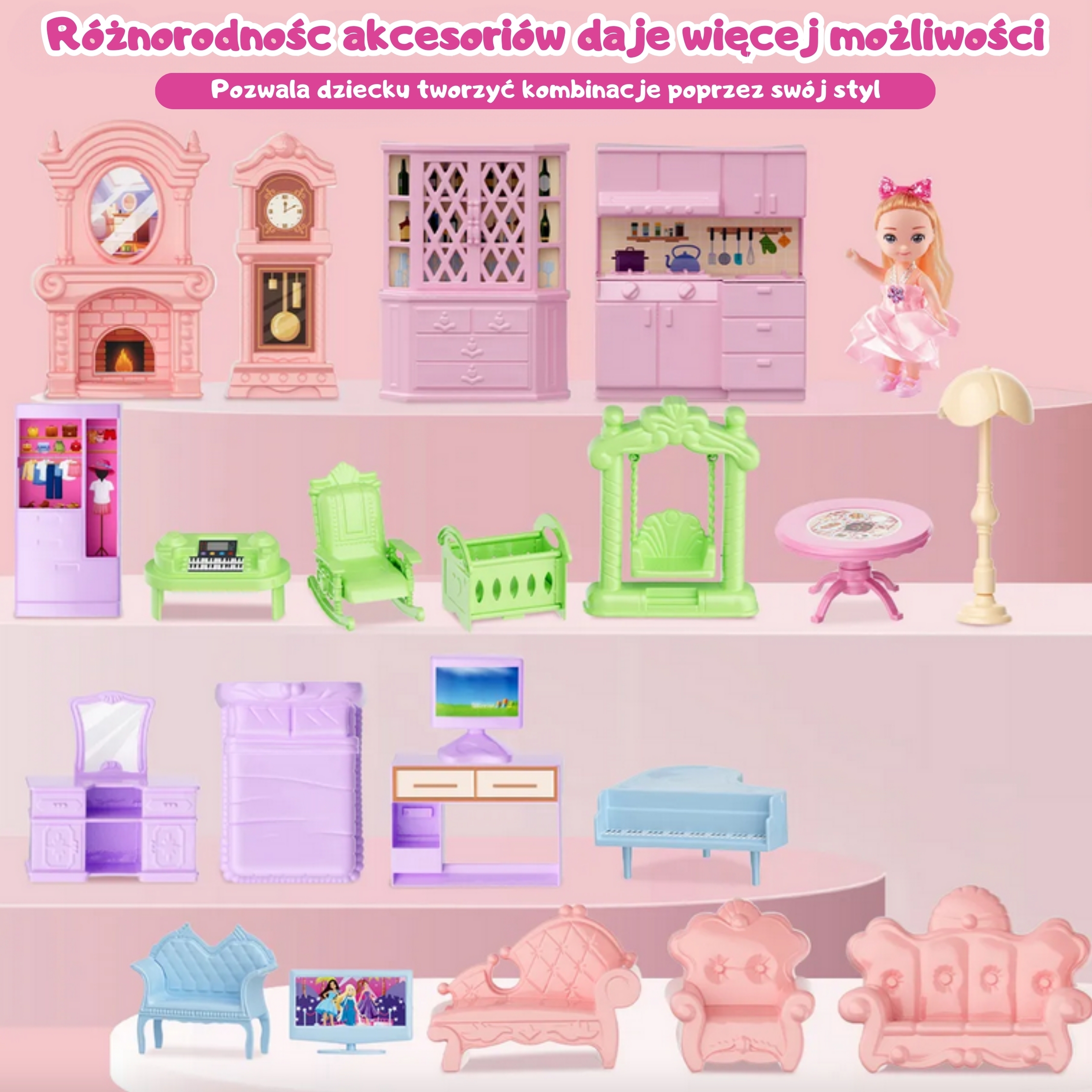 Kahekorruseline nukumaja on ideaalne mänguasi lastele, pakkudes tunde maagilist lõbu ja loovat sisekujundust. See viib lapsed muinasjutumaailma, kus nad saavad luua oma lugusid, sisustada ruume ja mängida lemmiktegelaste rollis. See on rohkem kui lihtsalt mänguasi – see on terve maailm, mille laps saab ise luua!