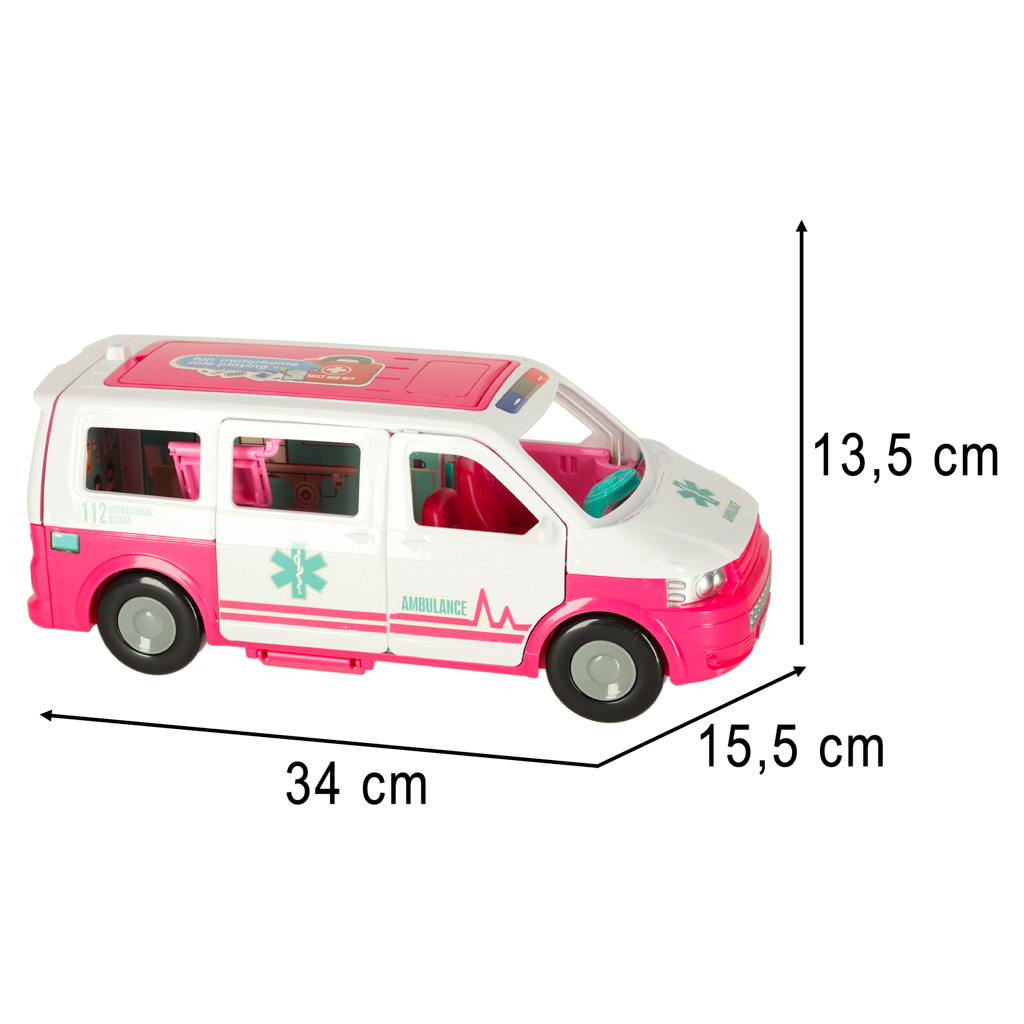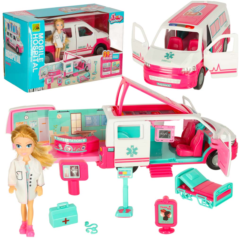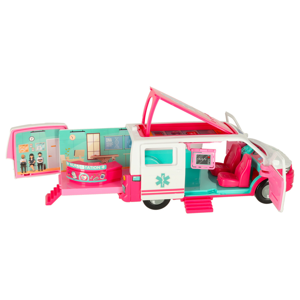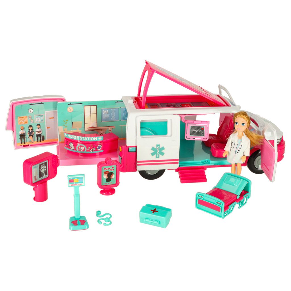 See kokkupandav mänguambulans nukuga on ideaalne viis tutvustada lastele arsti tööd ja rutiinseid tervisekontrolle. Ambulans avaneb, et paljastada täiendav vastuvõtuosakond, pakkudes lastele lõputuid mänguvõimalusi. Komplekt sisaldab mitmesuguseid tarvikuid, mis aitavad lastel mõista terviseuuringute tähtsust.