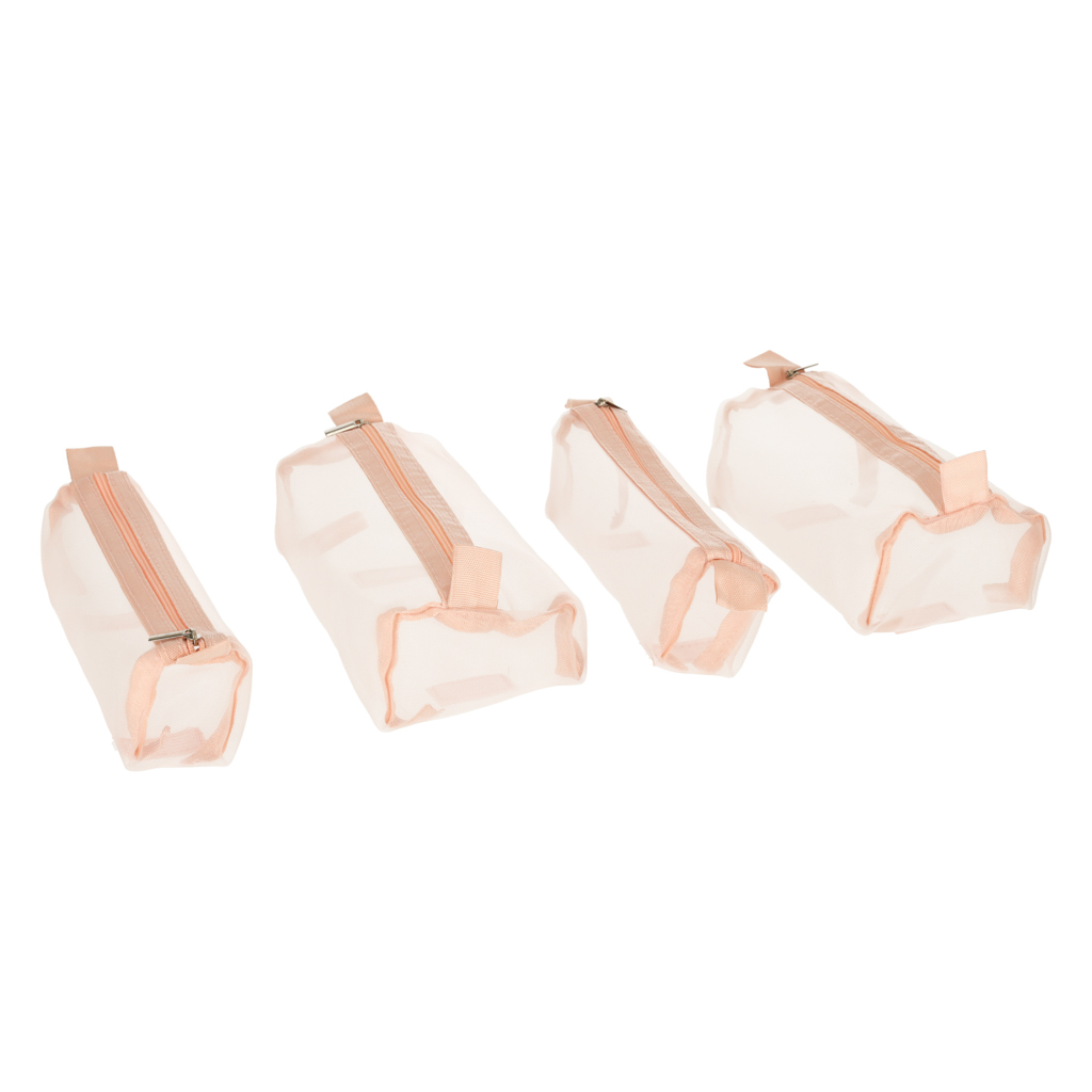 See reisikosmeetikakott on loodud mugavaks kasutamiseks, võimaldades kiiret juurdepääsu oma toodetele tänu võrkkangast taskutele. Kotti saab hõlpsasti kokku rullida, et see võtaks vähem ruumi pagasis, muutes selle ideaalseks reisikaaslaseks.