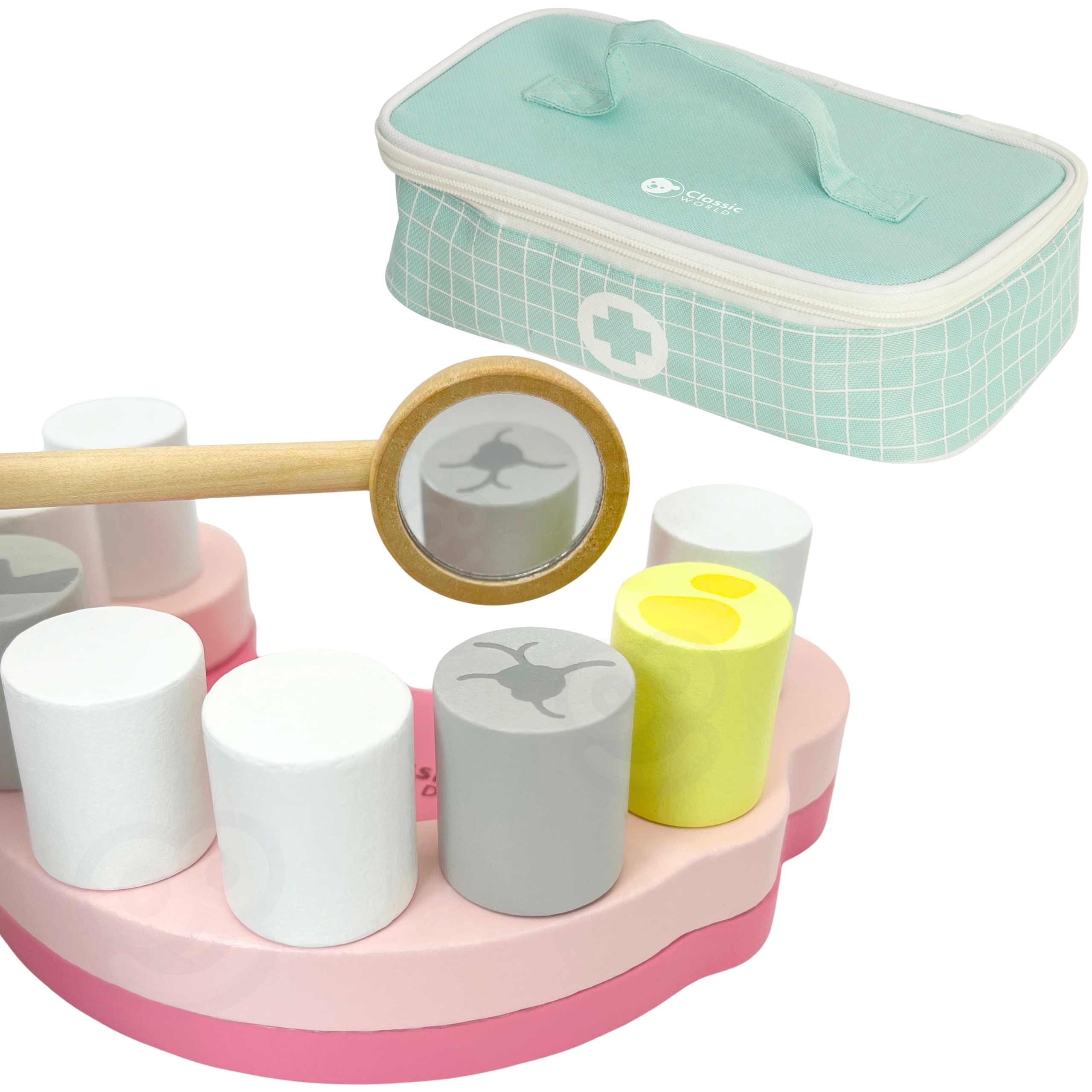Muuda hambaarsti hirm põnevaks mänguks selle puidust hambaarsti mängukomplektiga! See realistlik rollimängu komplekt aitab lapsel harjuda arsti külastustega ja mõista suuhügieeni tähtsust. Komplekt sisaldab kõiki vajalikke tarvikuid, nagu liigutatavate hammastega lõualuu mudel, süstal, pintsetid ja peegel, mis on pakitud esteetilisse kangast kotti. Hambaarsti mängimine toetab lapse empaatia, loovuse ja käeliste oskuste arengut.