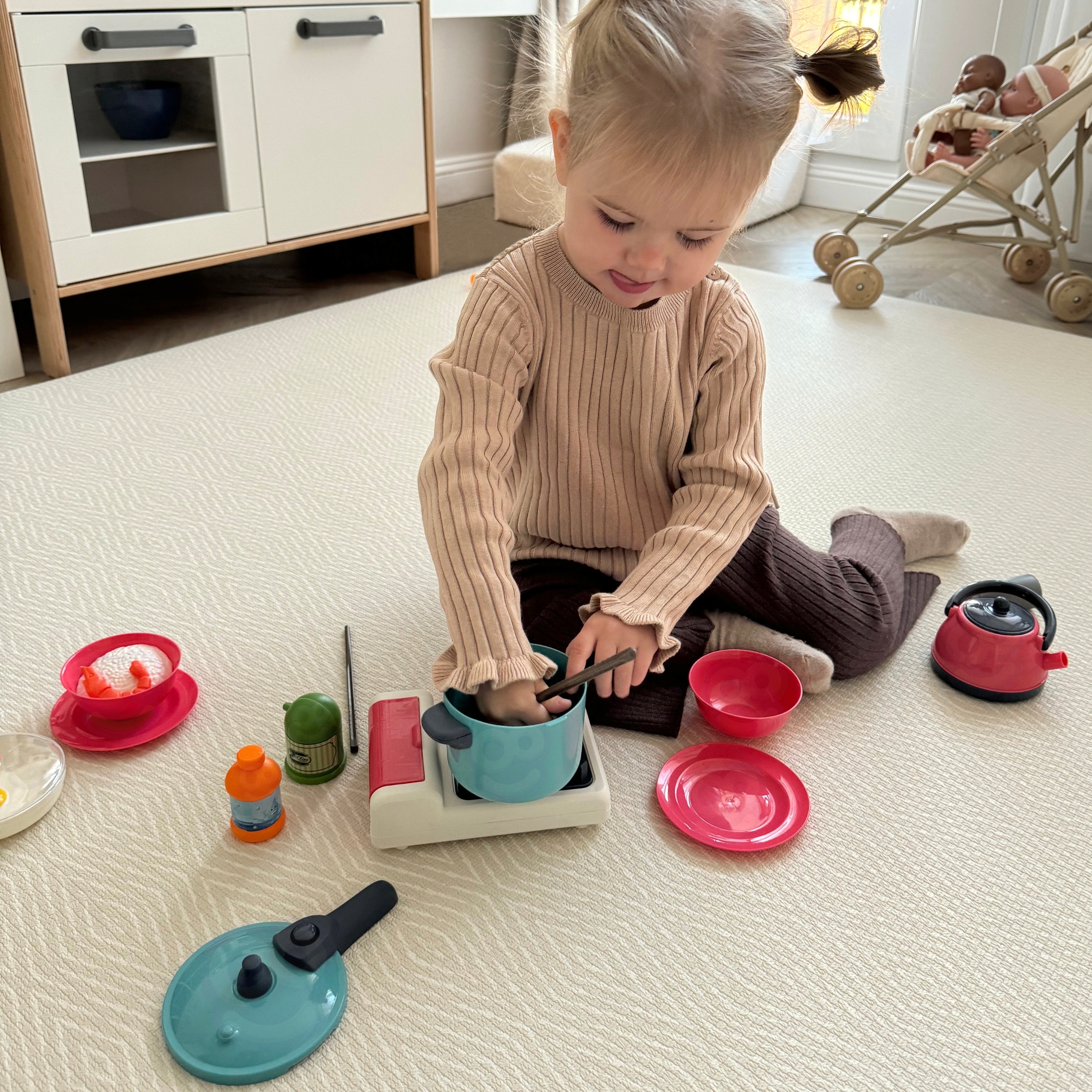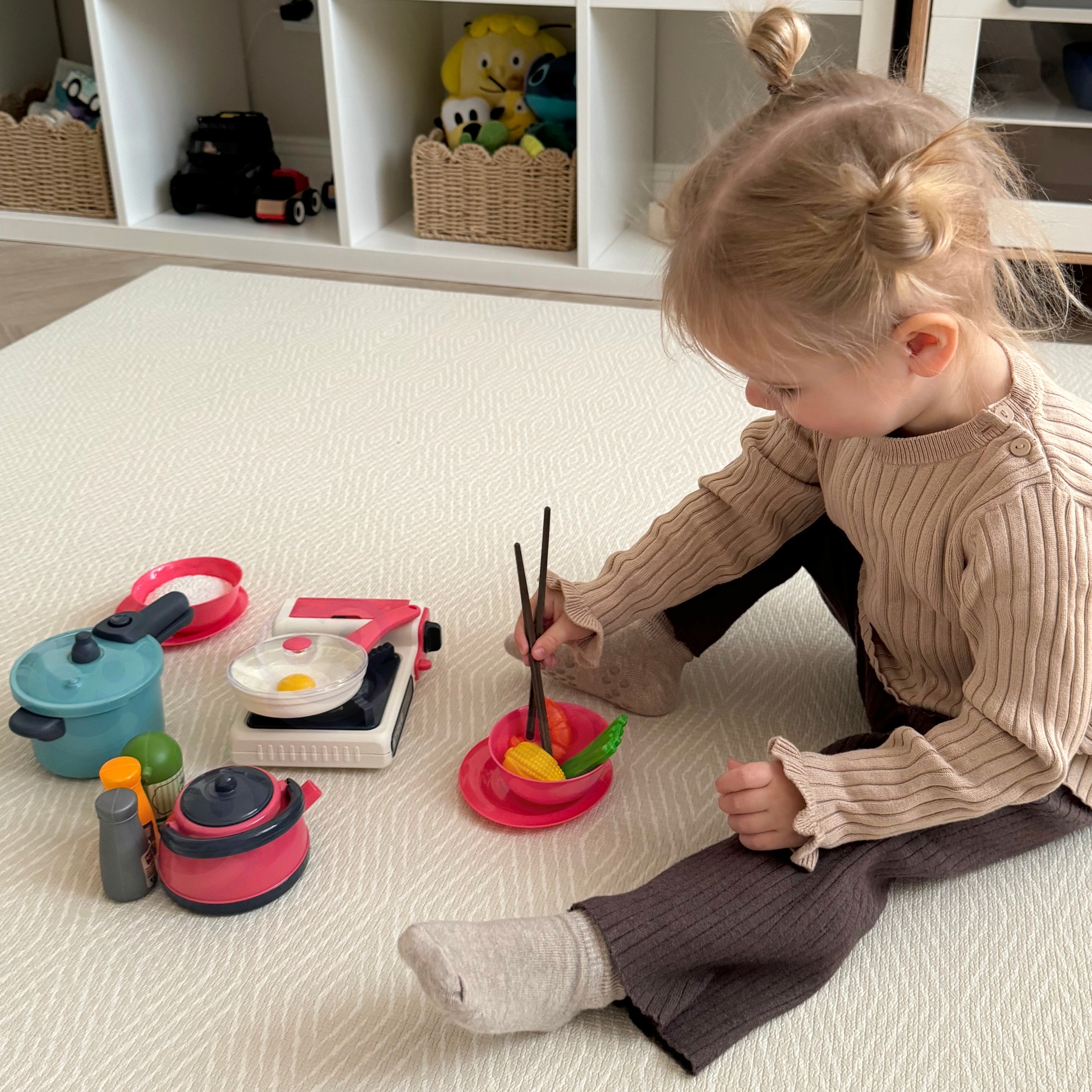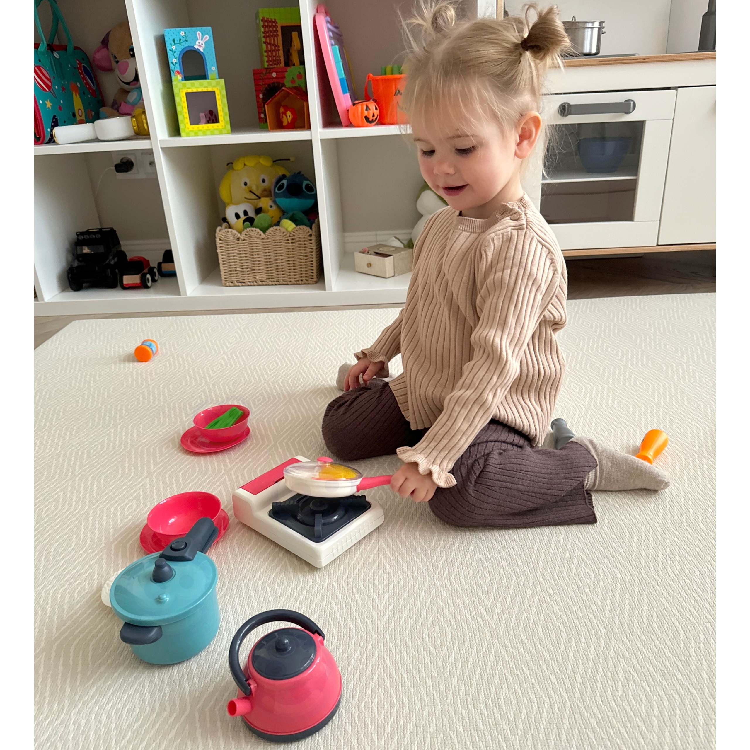 Komplekt pakub lastele võimalust mängida kokka, luua kujuteldavaid retsepte ja valmistada ette kujuteldavaid roogasid. See on suurepärane viis arendada kujutlusvõimet ja julgustada lapsi koostööd tegema. Lapsed saavad mängida üksi või koos sõpradega, jagades rolle ja planeerides ühiseid eineid.