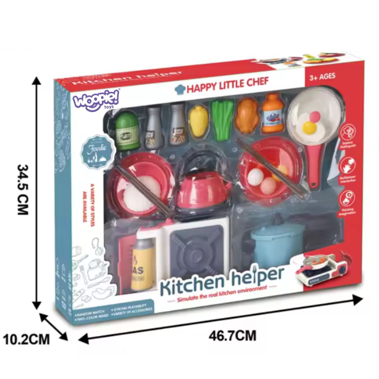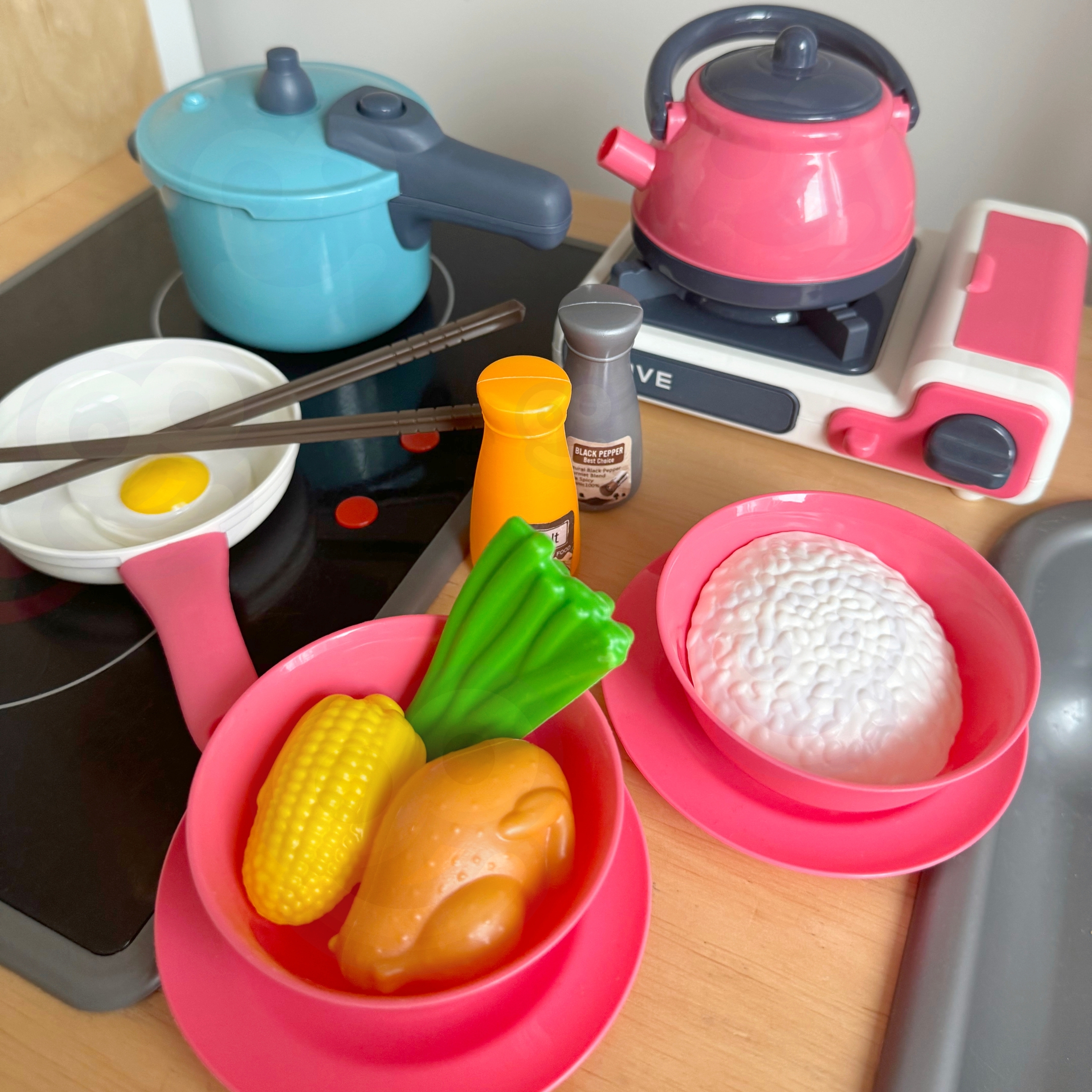 Kokkuvõttes on see köögimängukomplekt suurepärane viis tutvustada lastele toiduvalmistamise maailma, arendades samal ajal nende loovust ja sotsiaalseid oskusi. See on turvaline ja vastupidav mänguasi, mis pakub tundideks lõbusat ja harivat tegevust.