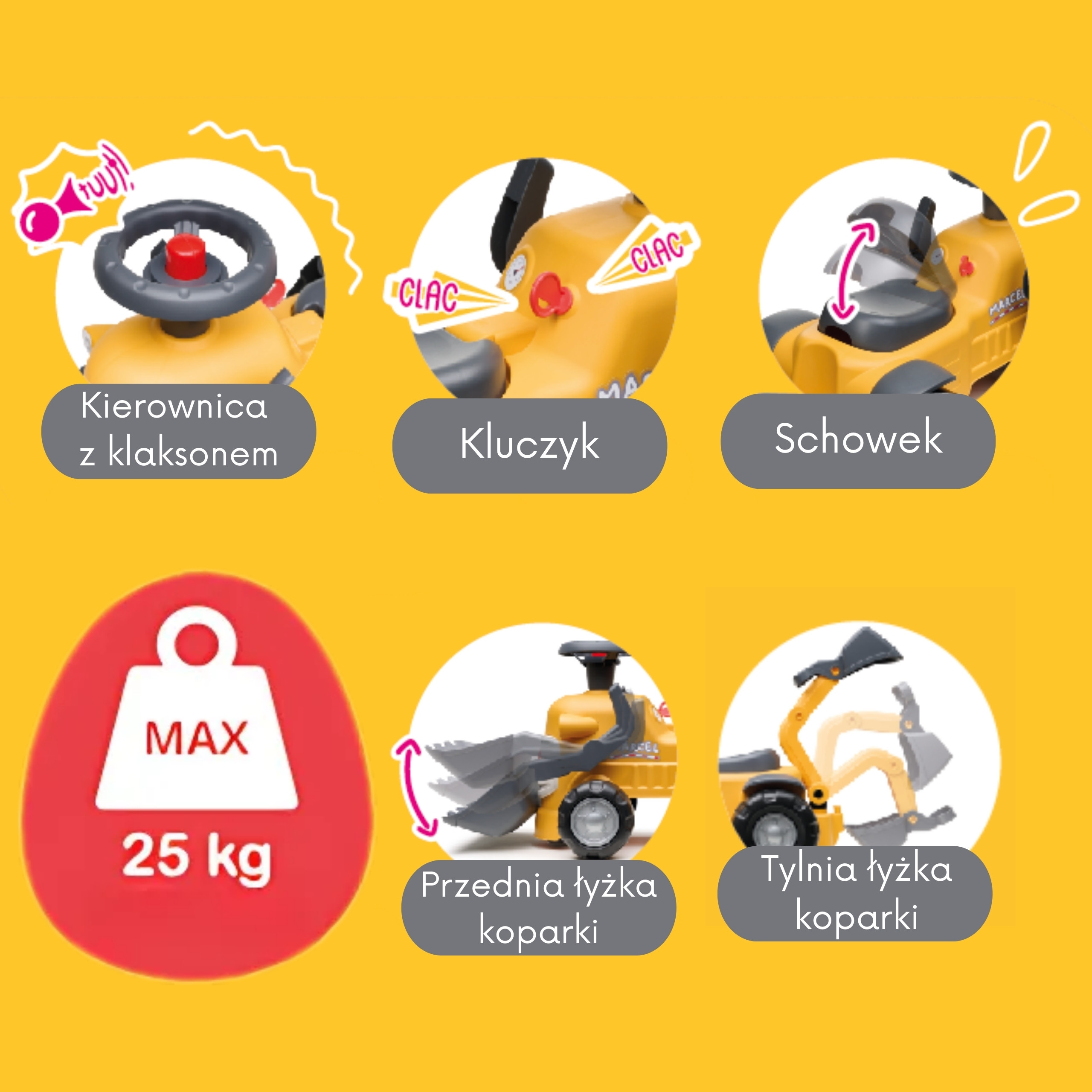 FALK Chodzik Jeździk Koparka Marcel z Przyczepką