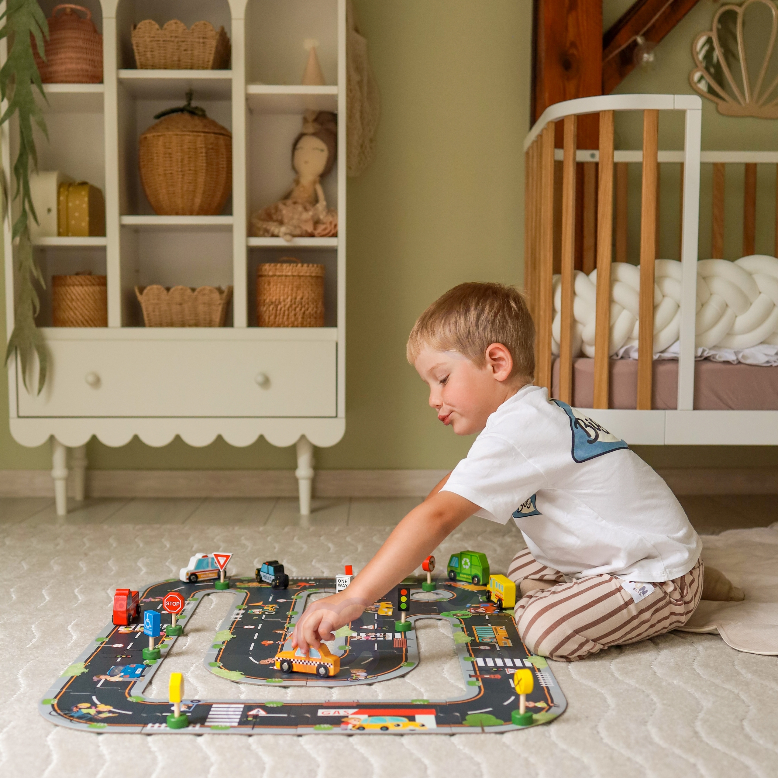 Laste liikluspusle mängukomplekt pakub väikestele inseneridele lõputult lõbusaid võimalusi. See arendab loovust, loogilist mõtlemist ja tutvustab liikluseeskirju läbi kaasahaarava mängu. Ideaalne viis avastada ümbritsevat maailma ja õppida turvalisuse ning liikluskorralduse põhitõdesid.