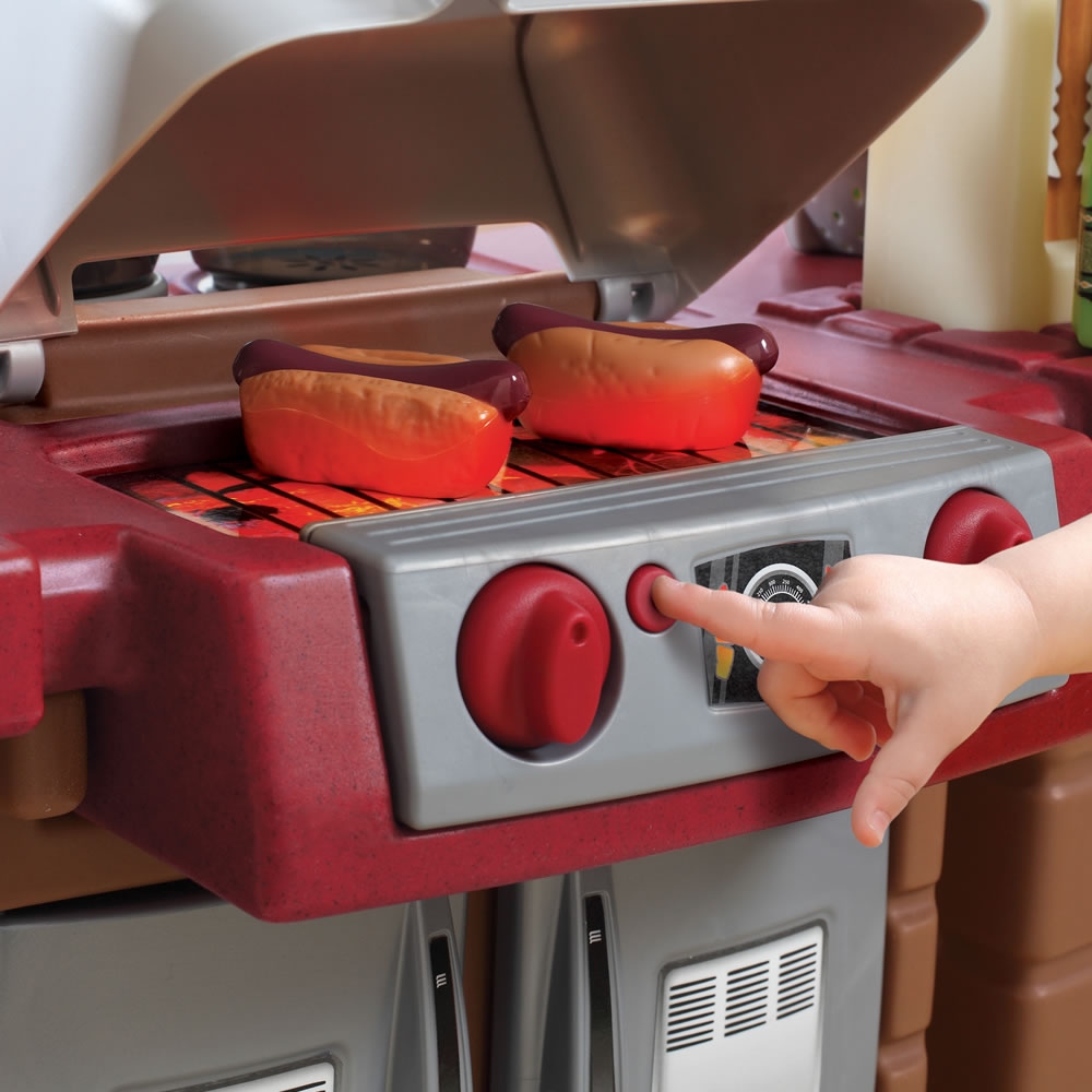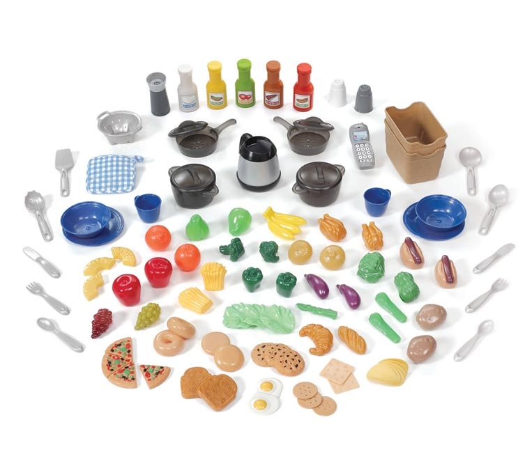 Avasta laste mänguköögi võlud, mis pakub kolmekülgset mänguala. Roostevabast terasest viimistluse ja valatud põrandaga köök sisaldab valgeid kappe, väljatõmmatavat hoiuruumi ja suurt tööpinda. Kasuta spetsiaalseid nõusid, et aktiveerida realistlikud pliidiplaadi tuled ja helid, ning pese nõud sisseehitatud kraanikausis pöörleva segistiga. Komplekt sisaldab 103-osalist tarvikute komplekti, et lapsed saaksid kohe alustada toiduvalmistamist järgmiseks koosviibimiseks. Lapsed ootavad põnevusega, et saaksid oma köögis kokata ja mängida!