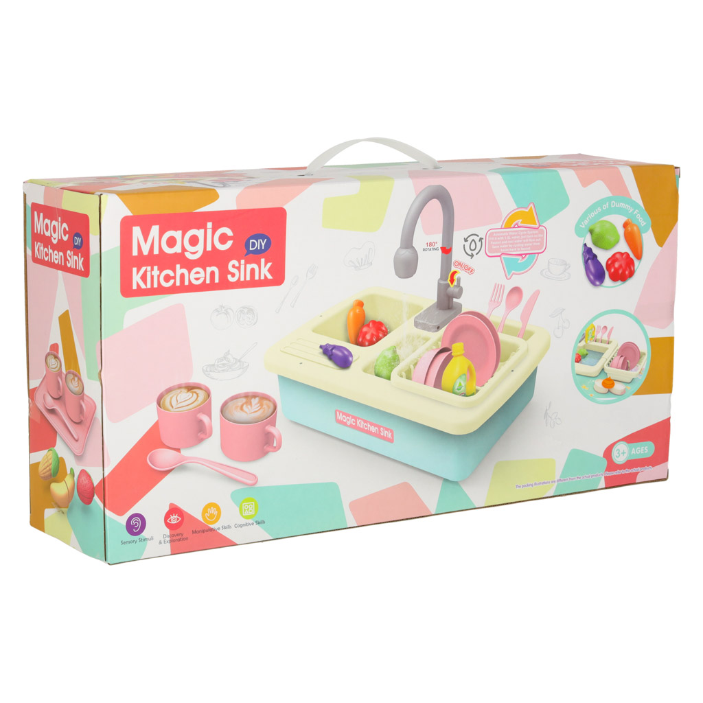 Komplekti kuuluvad erinevad köögitarvikud, mis võimaldavad lastel luua mitmekesiseid mängustsenaariume. Lapsed saavad mängida nõude pesemist, lõigata plastist puu- ja köögivilju ning valmistada „toite“, mida serveerida kaasasolevate taldrikute ja söögiriistadega.