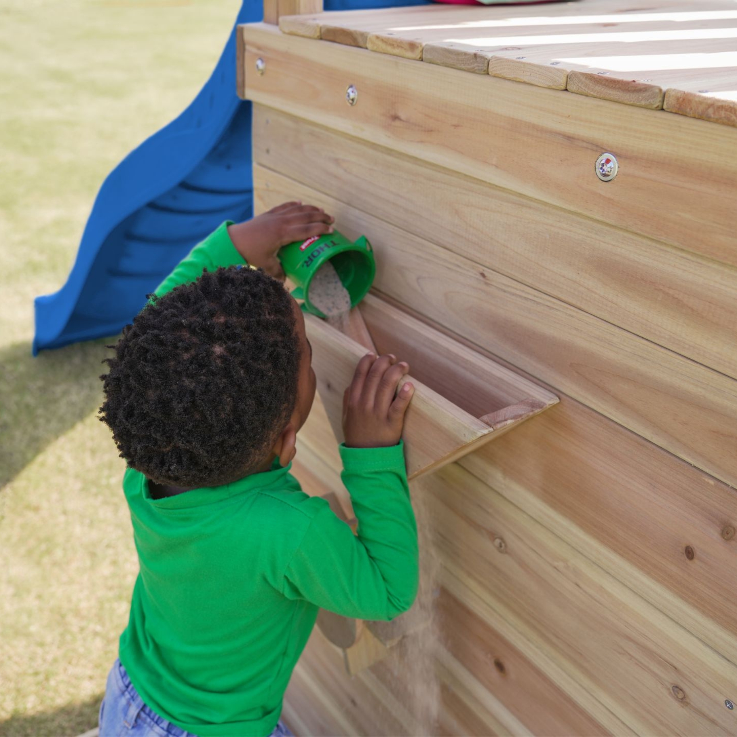 - Liivakast katuse ja mänguseinaga, et kaitsta lapsi päikese eest.
