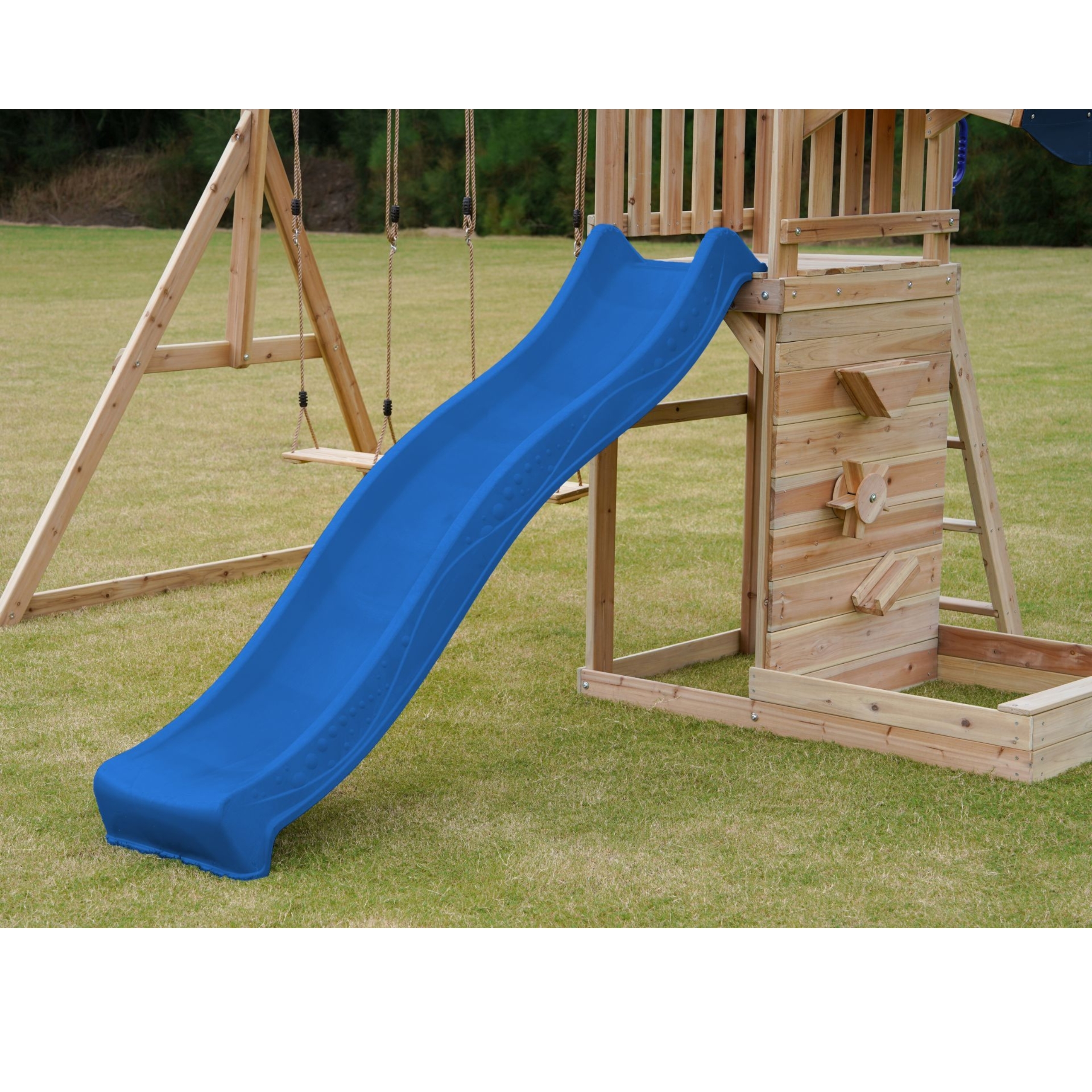 - Topeltkiik ja pikk 220 cm liumägi, millele saab lisada vee, et pakkuda jahedust kuumadel päevadel.