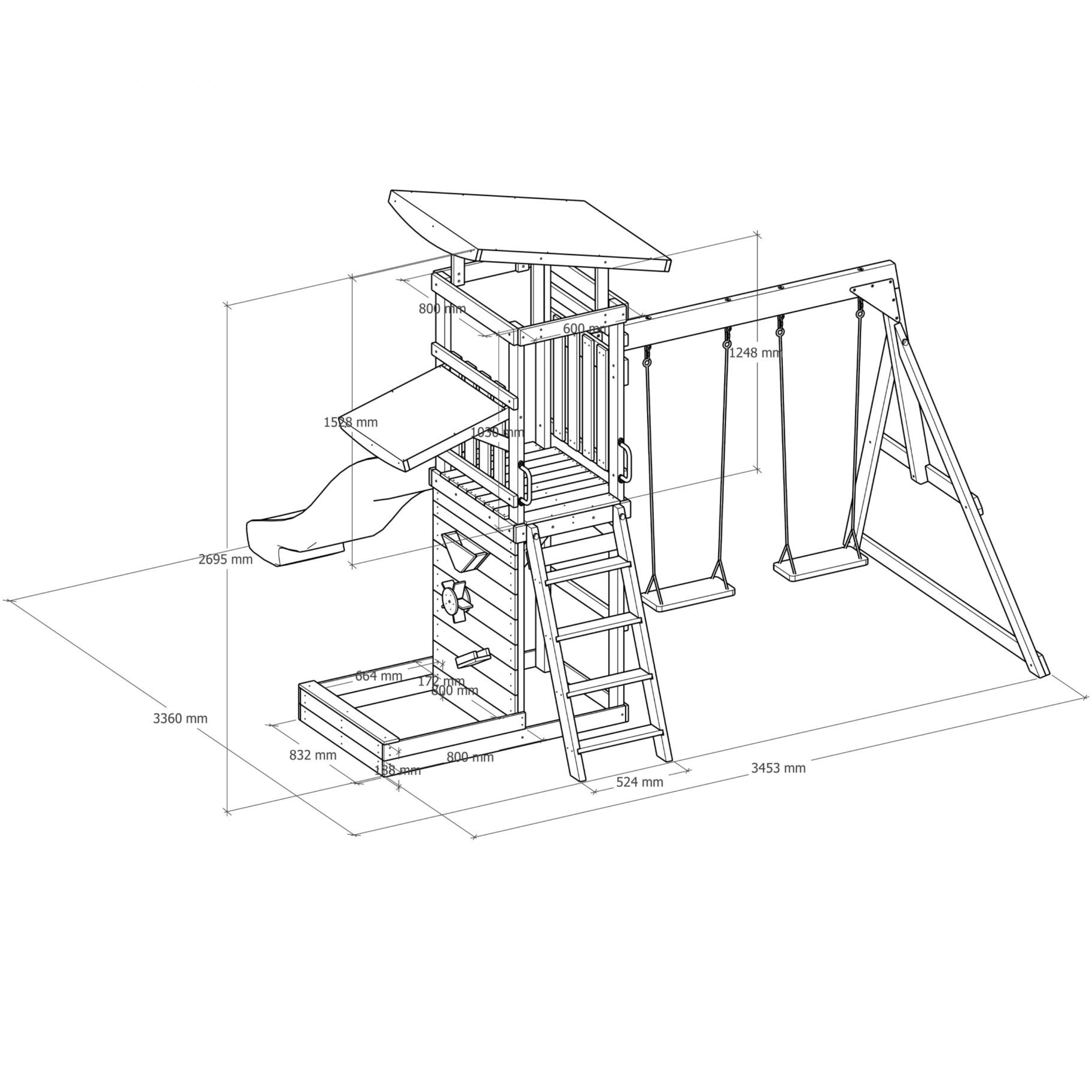 Kokkuvõttes on see mänguväljak suurepärane täiendus igasse aeda, pakkudes lastele ohutut ja lõbusat mängukeskkonda, mis soodustab füüsilist aktiivsust ja loovust. See on ideaalne valik peredele, kes soovivad pakkuda oma lastele kvaliteetset mänguaega õues.