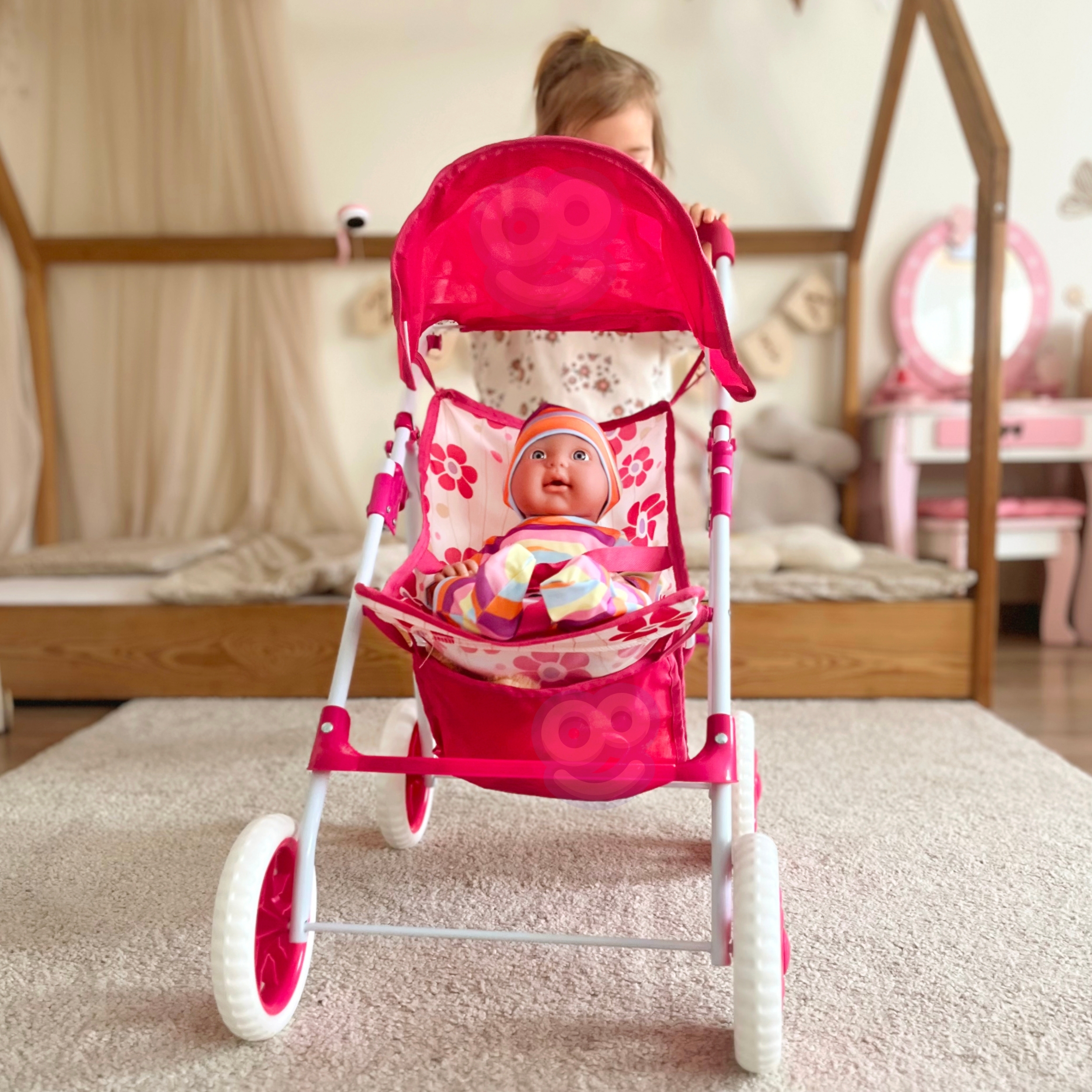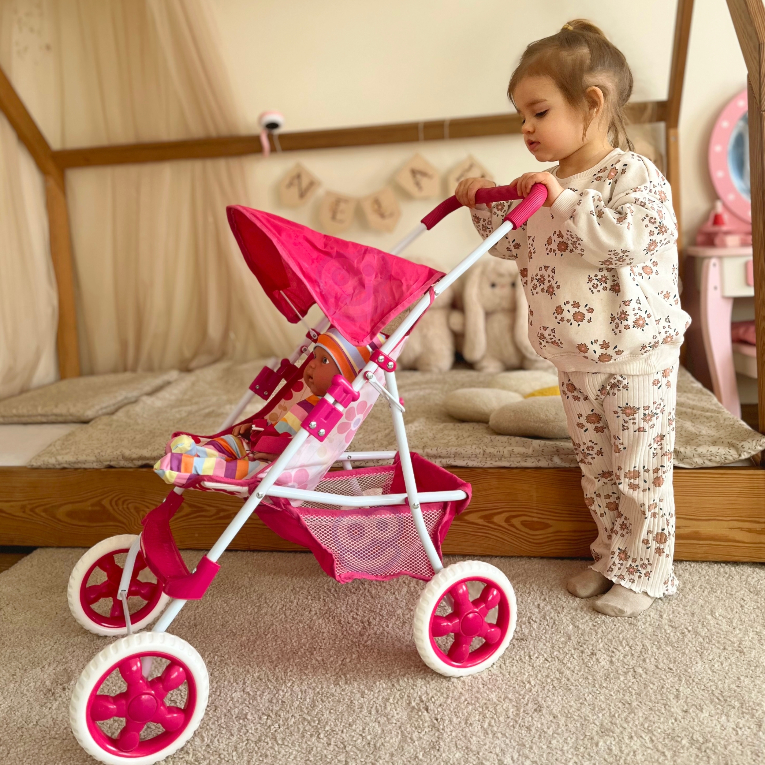 Kokkuvõttes on see nukuvanker suurepärane lisand igasse mängutuppa, pakkudes lastele võimalust arendada oma sotsiaalseid oskusi ja loovust. Stiilne disain ja praktilised omadused teevad sellest nukuvankrist ideaalse kaaslase igale väikesele hoolitsejale.