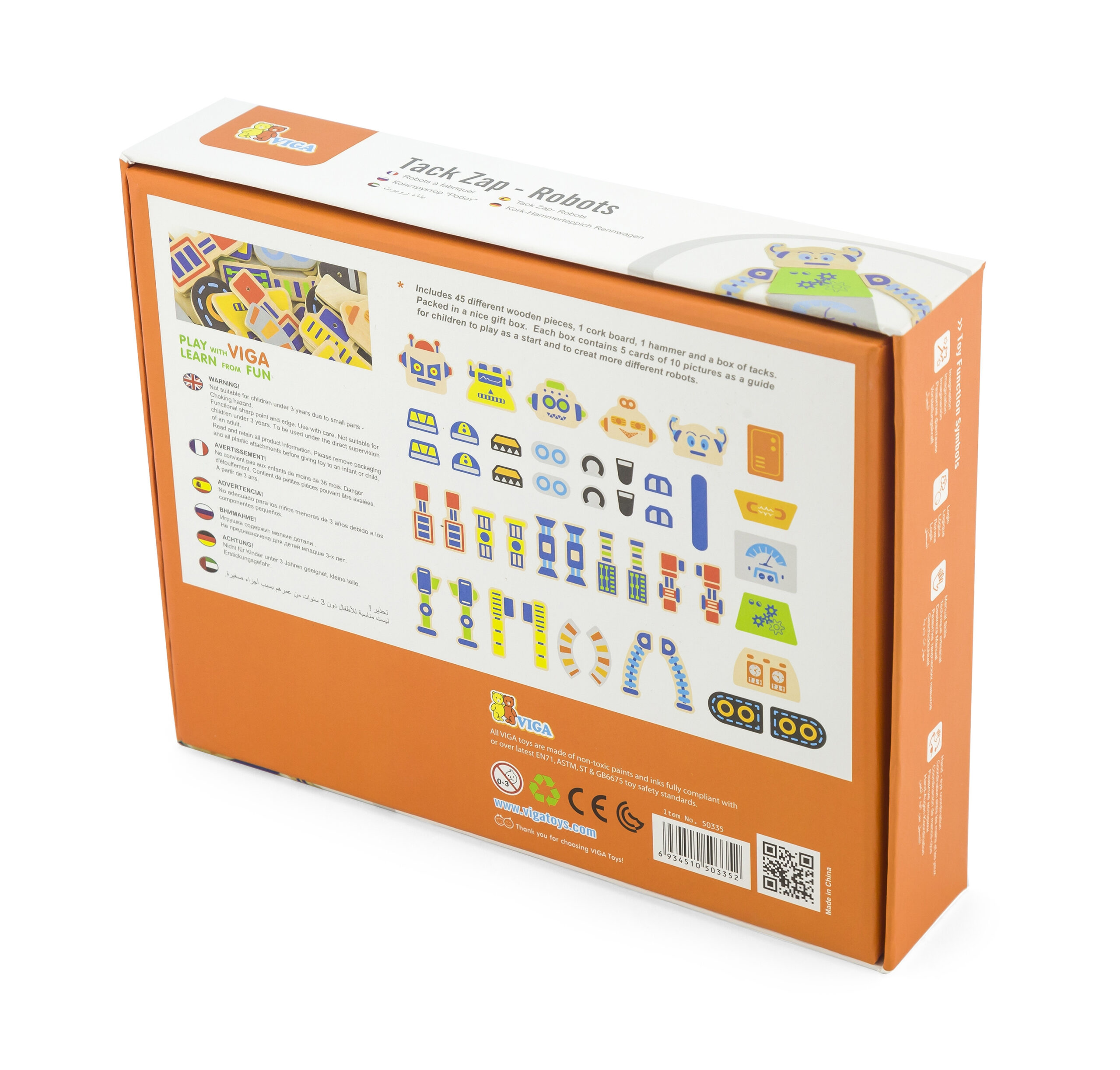 VIGA Drewniana Przybijanka Roboty 45 elementów Montessori