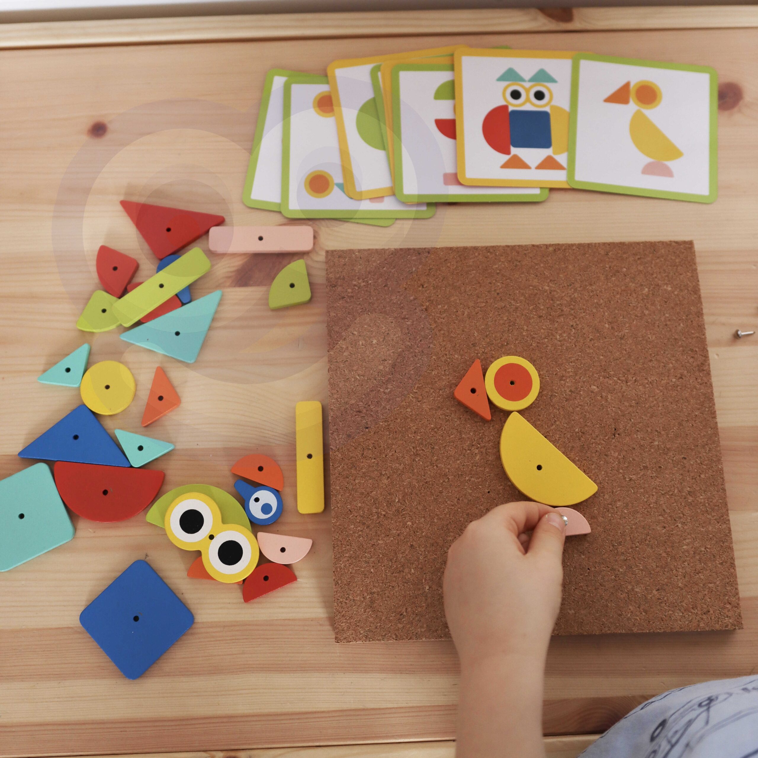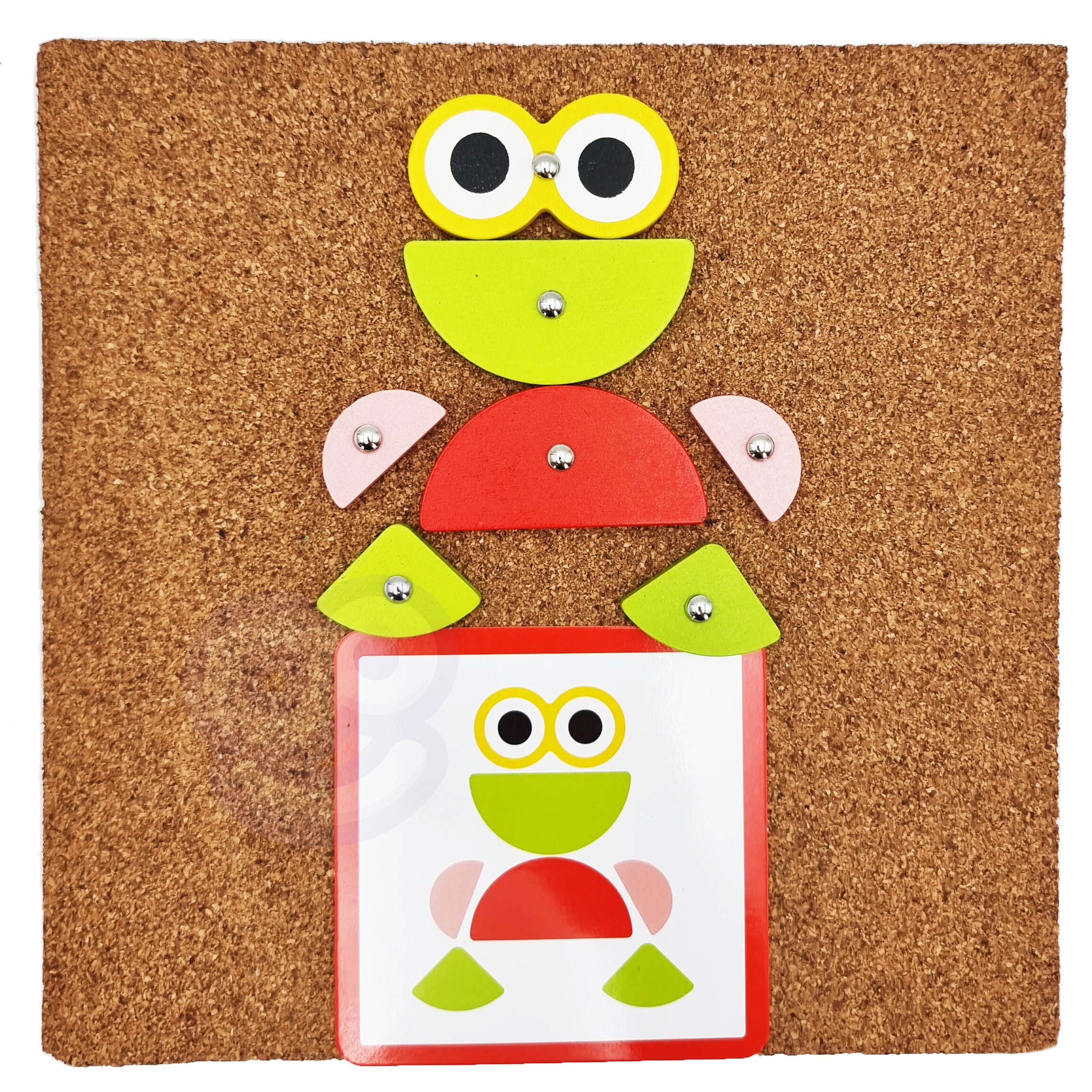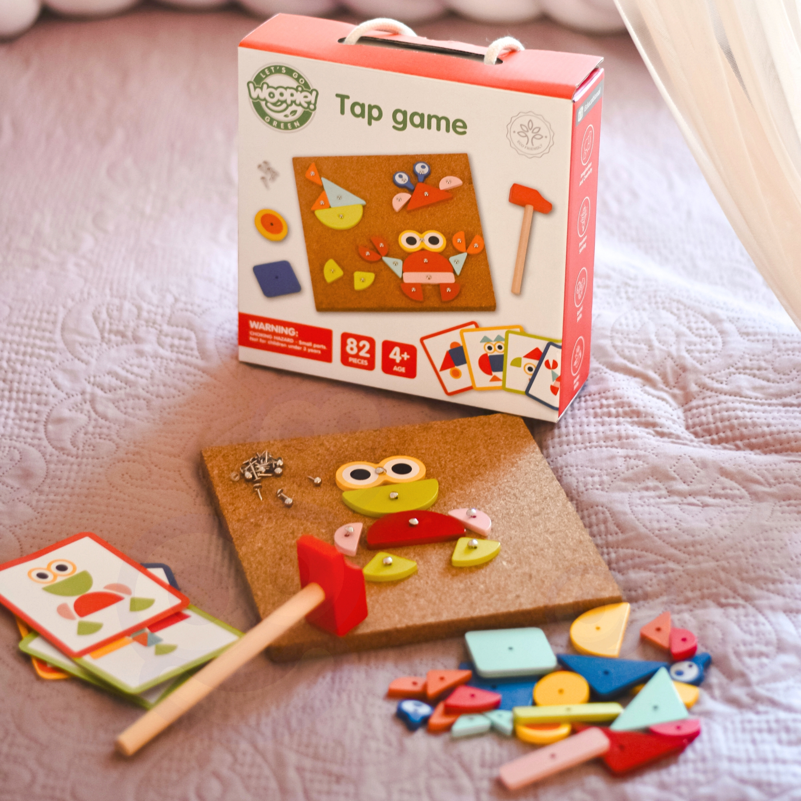 Mängu alustamiseks valige kaart ja asetage see korktahvlile. Kasutades haamrit ja naelu, kinnitage klotsid tahvlile vastavalt valitud mustrile. Lapsed saavad ka ise uusi mustreid luua, kasutades oma loovust ja kujutlusvõimet.