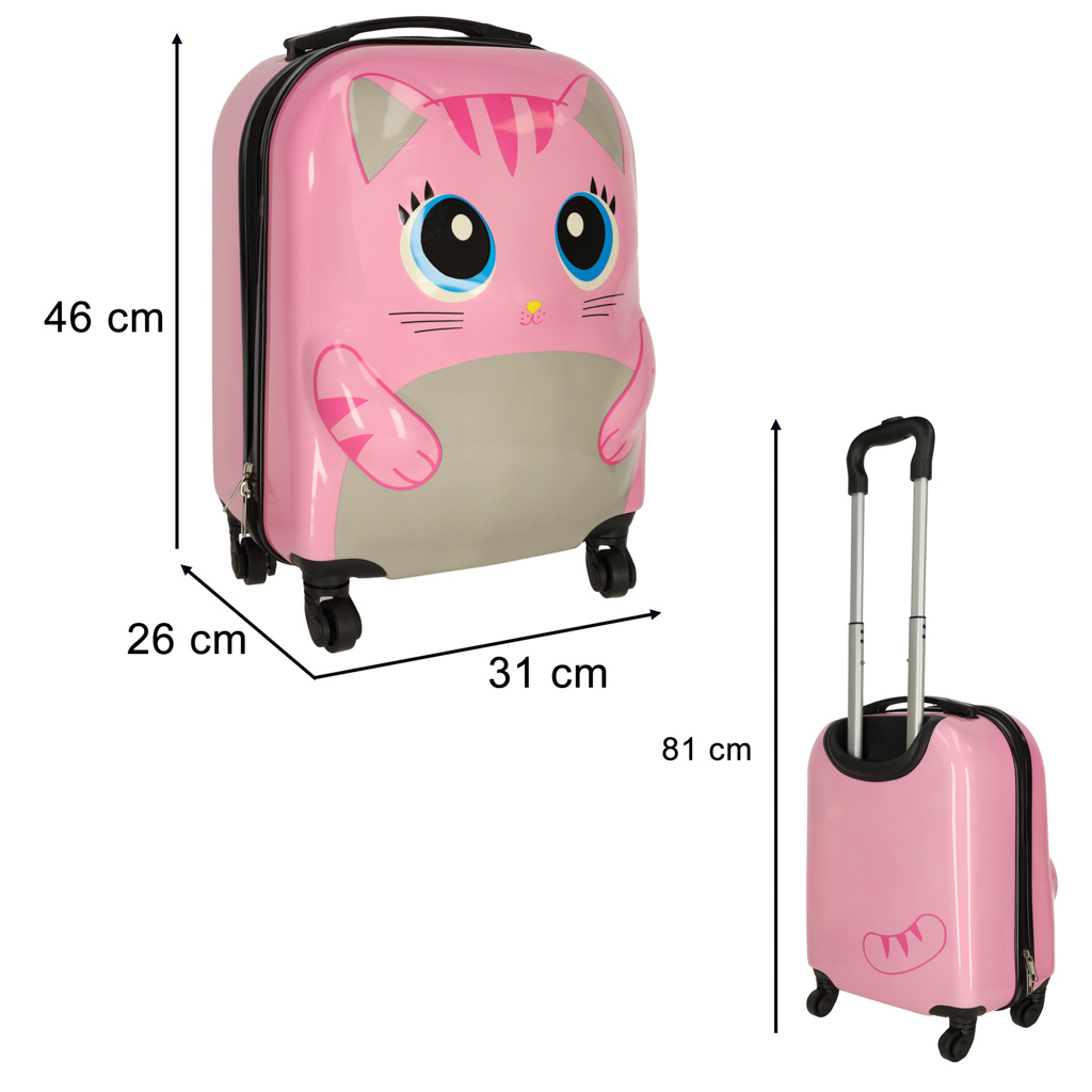 See laste reisikohver roosa kassiga on ideaalne kaaslane igale seiklusele. Kassi graafika lisab igale reisile rõõmu ja muudab selle meeldejäävaks. Kohvri funktsionaalne disain ja suur mahutavus tagavad, et kõik vajalikud esemed ja lemmikmänguasjad mahuvad mugavalt kaasa.