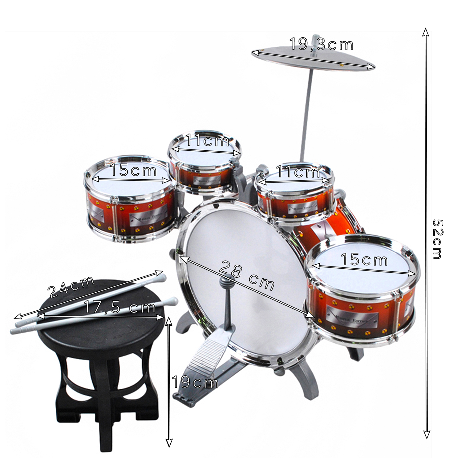Laste trummikomplekt on ideaalne vahend rütmitunnetuse ja muusikaliste oskuste arendamiseks. See komplekt aitab lastel arendada koordinatsiooni, motoorseid oskusi ja loovust, pakkudes samal ajal lõbusat ja harivat ajaviidet.