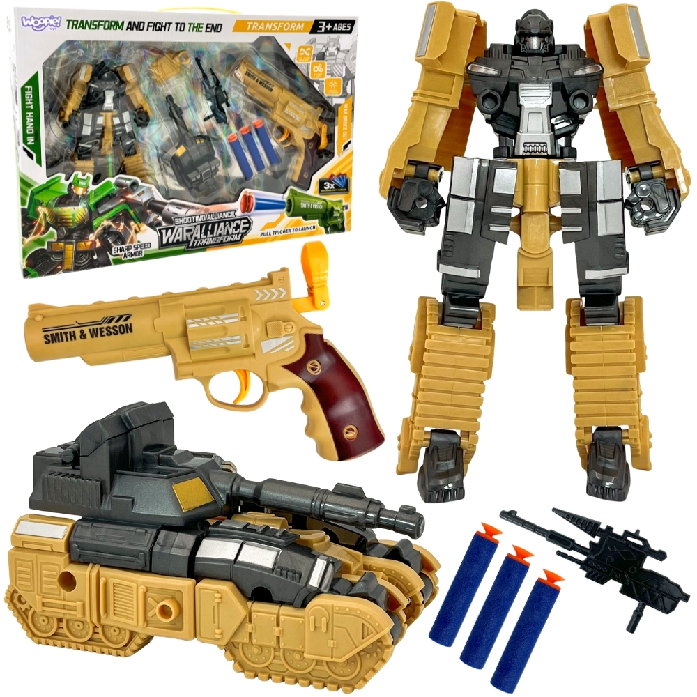 WOOPIE Zestaw 3w1 Robot Transformujący Czołg i Wyrzutnia na Strzałki Brązowy