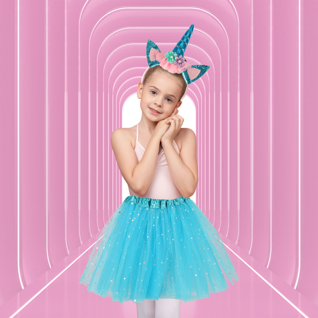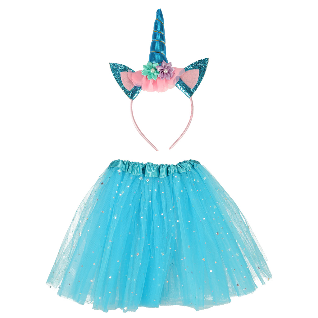 Laste ükssarviku kostüüm sinise seelikuga
