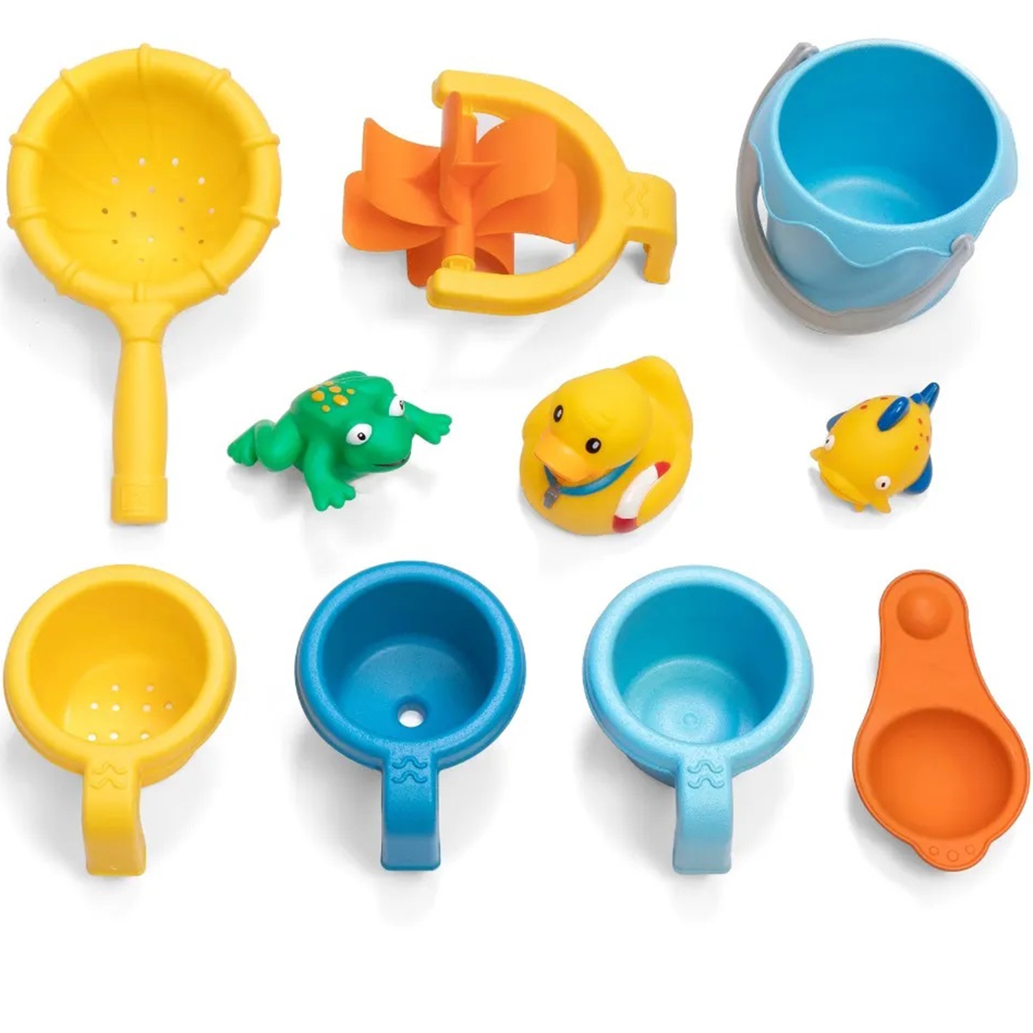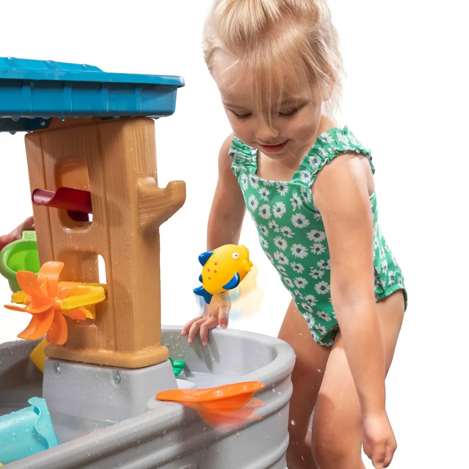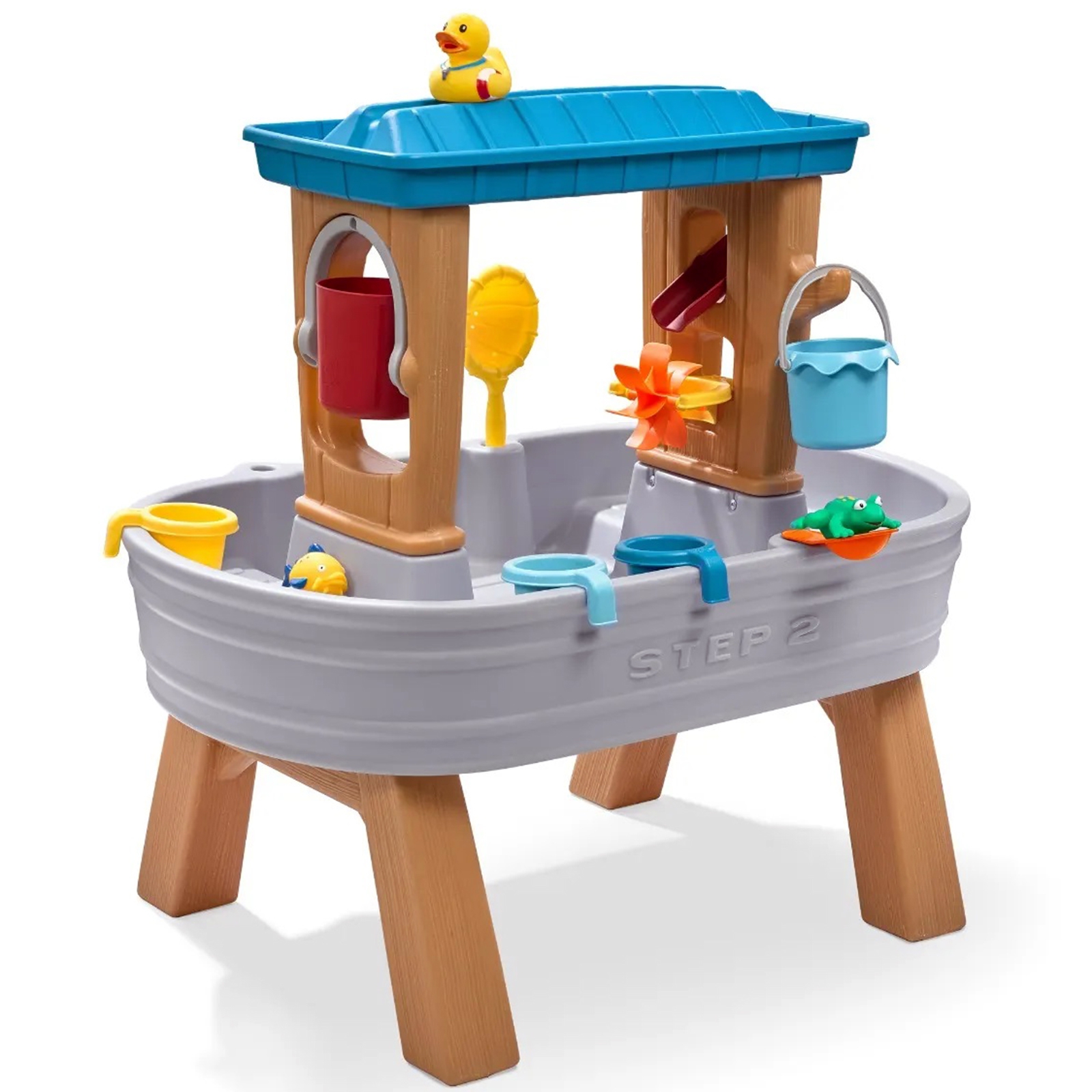 Veemängulaud on lihtne kokku panna ja see nõuab täiskasvanu abi. Kui vesi on laua ülaossa valatud, hakkab see voolama alla, luues realistliku vihmaefekti. Üks külg suunab vee ämbrisse, mis täitumisel kallutab ja valab vee välja, samal ajal kui teine külg suunab vee rennile, mis paneb pöörleva veeratta liikuma.