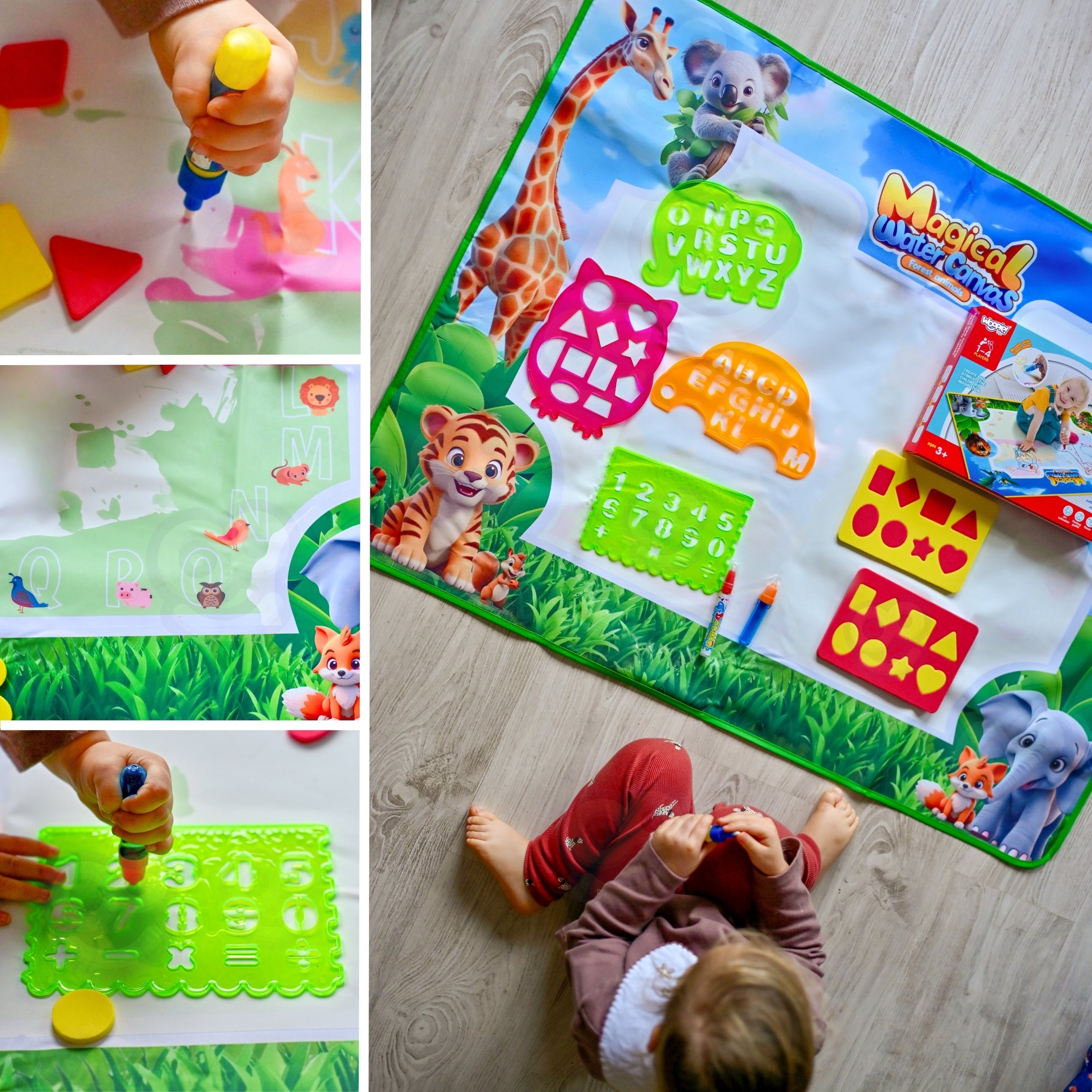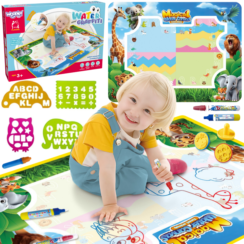 Veemati kasutamine on lihtne ja lõbus. Lihtsalt täitke kaasasolevad veepintslid puhta veega ja laske lastel alustada joonistamist. Joonistused ilmuvad matile, kuid kaovad kuivades, andes ruumi uutele kunstiteostele. Tänu šabloonidele saavad lapsed õppida tähti, numbreid ja kujundeid, arendades samal ajal oma loovust ja keskendumisvõimet.