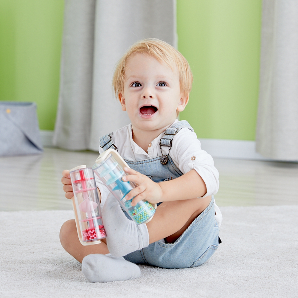 Avasta rahustava vihma heli koos selle sinise vihmaveetoru mänguasjaga, mis on täidetud liikuvate kuulidega. Raputa, keera ja pööra, et jälgida, kuidas helmed liiguvad ülevalt alla, luues lõõgastava helikogemuse. See mänguasi on suurepärane abivahend rütmikatundideks ja aitab arendada kuulmistaju.