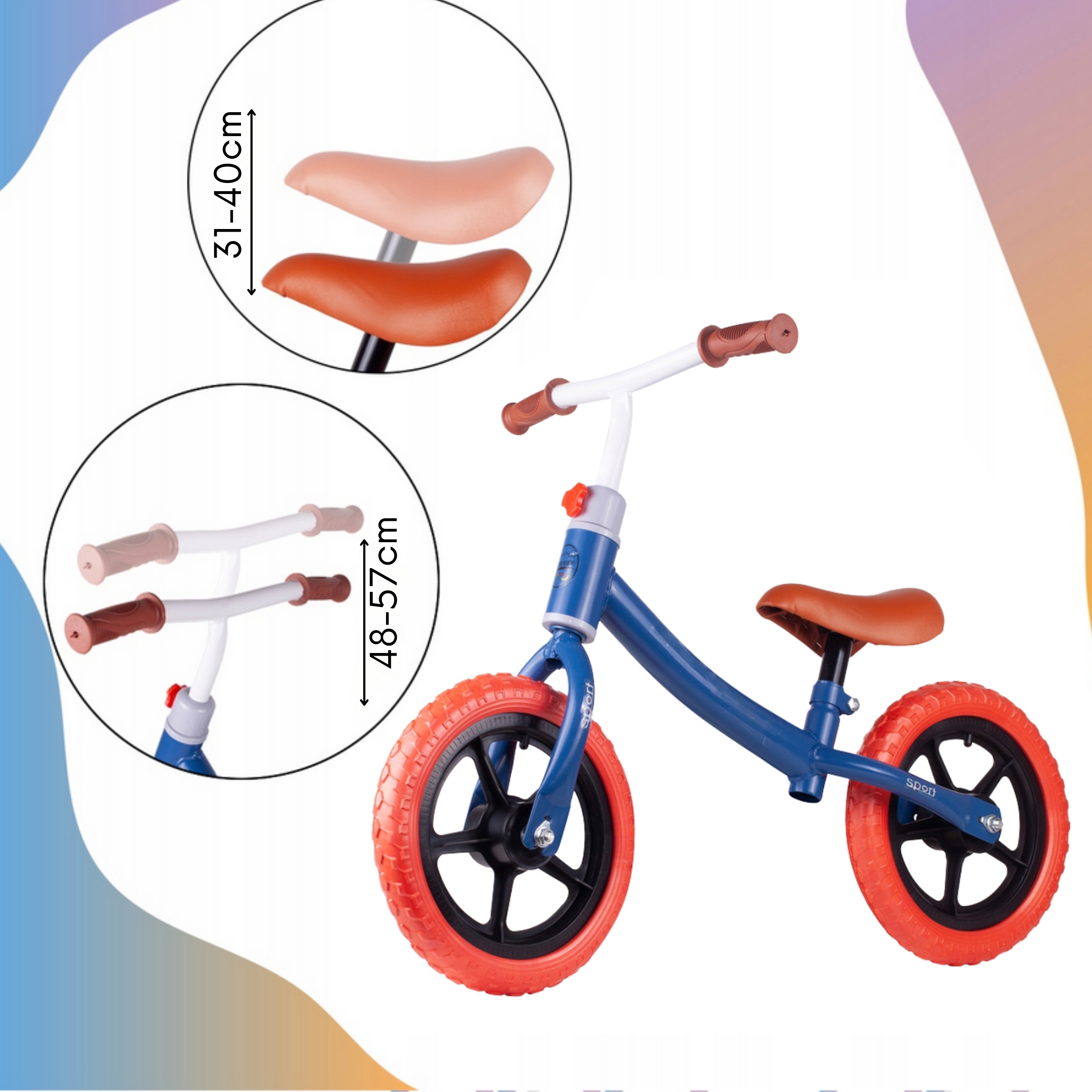 - Reguleeritav lenks (48–57 cm) ja sadul (31–40 cm)