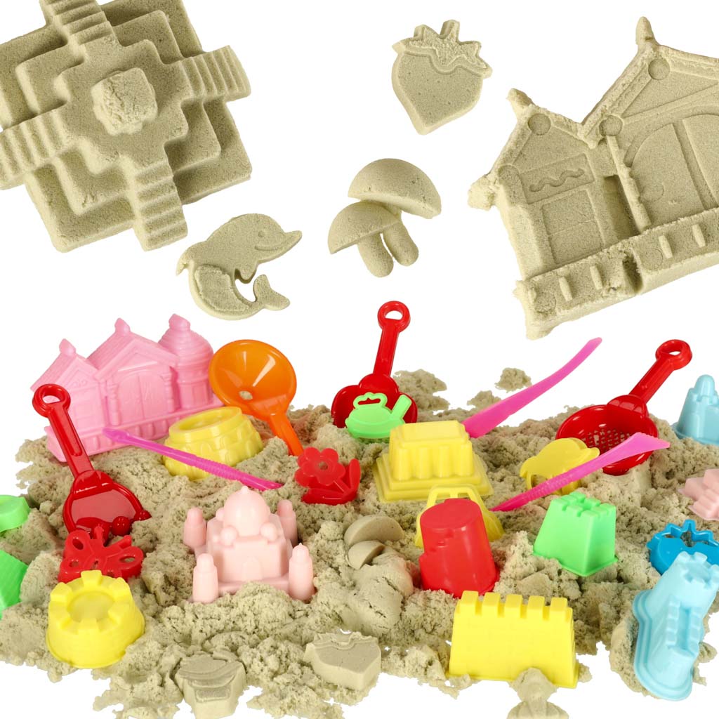 Komplekt sisaldab kühvlit, rehasid, modelleerimispatju ja 21 erinevat liivavormi, mis tagavad lõputud mänguvõimalused. Kasutades erinevaid tööriistu, saavad lapsed luua unikaalseid liivakujusid ja mustreid.