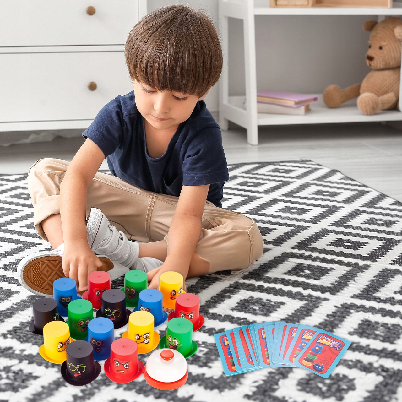 Mängu eesmärk on paigutada kübarad kaardil näidatud järjekorras ja vajutada kiiresti kellukest. Kiirem reageerija on võitja! Mäng arendab laste refleksi, loogilist mõtlemist ja käe-silma koordinatsiooni.