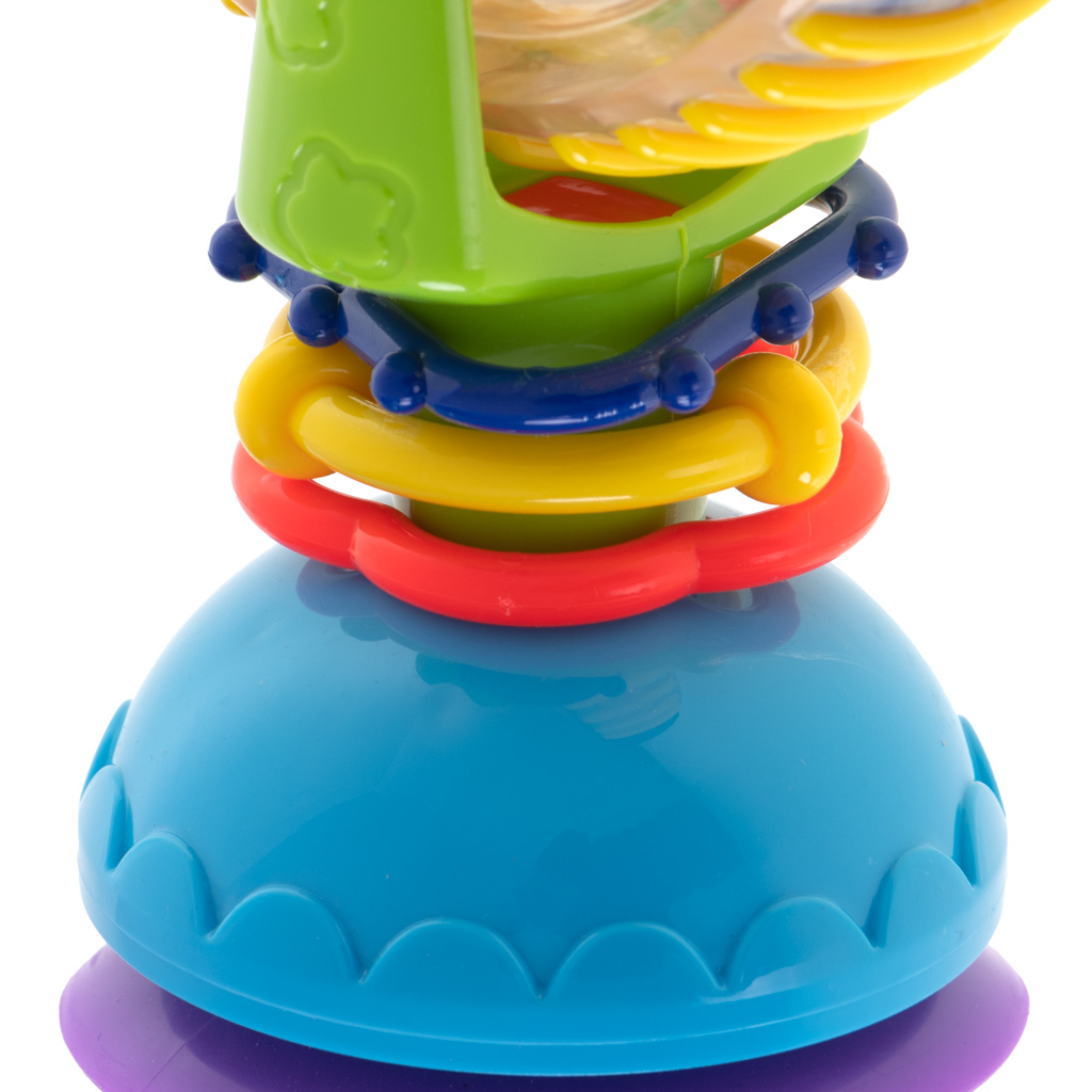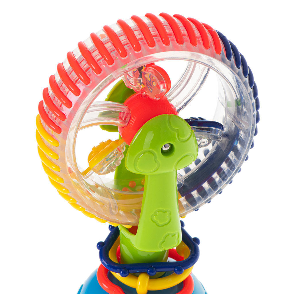 Mänguratas on varustatud tugeva iminapaga, mis hoiab selle kindlalt paigal, olenemata sellest, kui palju teie laps sellega mängib. Värvilised kuulikesed sees pakuvad lisaks visuaalsetele stiimulitele ka heliefekte, mis muudavad mängimise veelgi lõbusamaks.