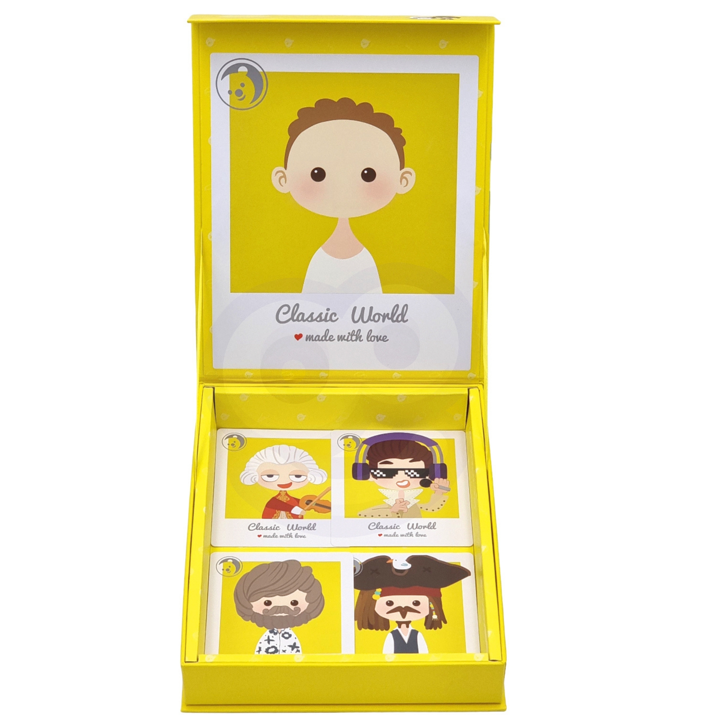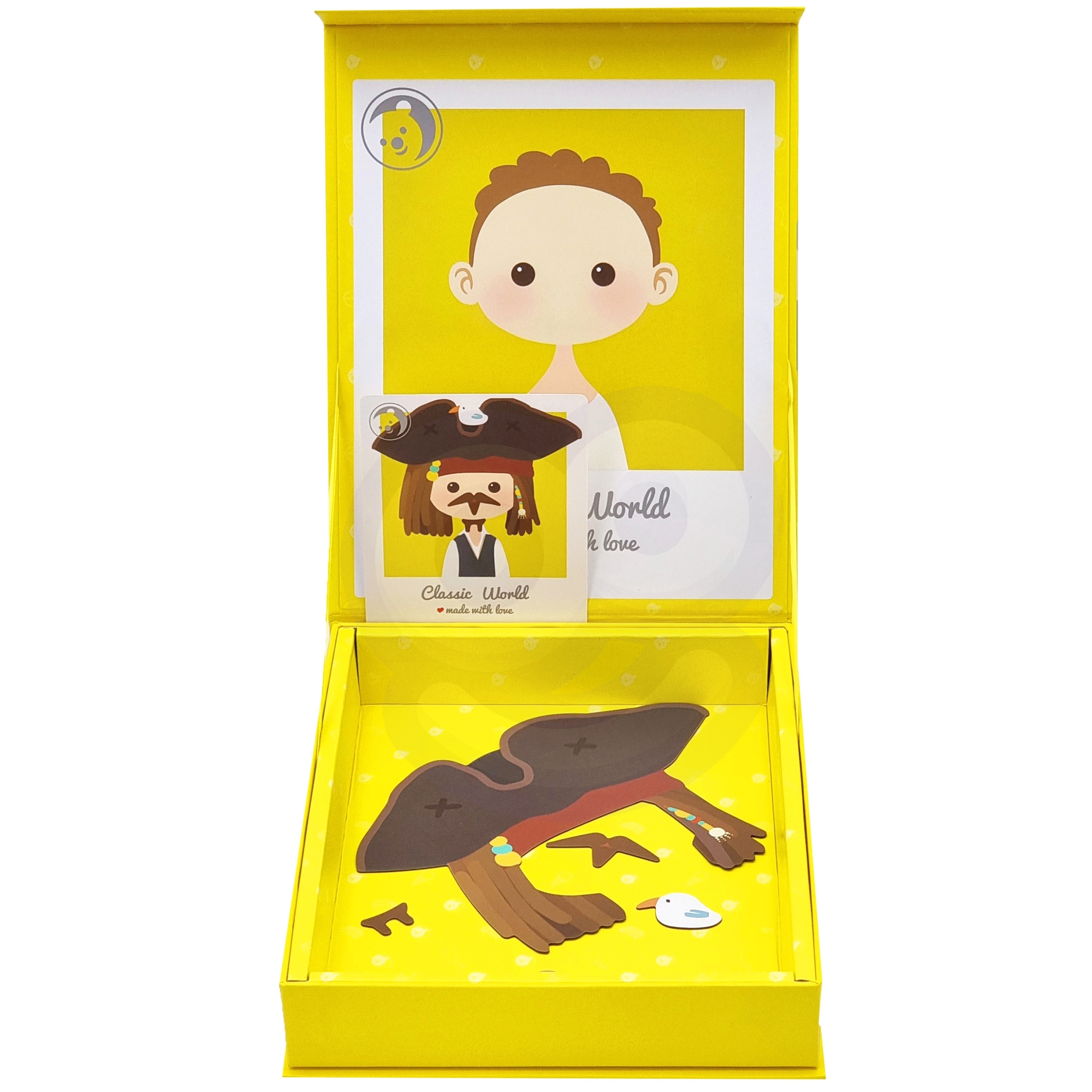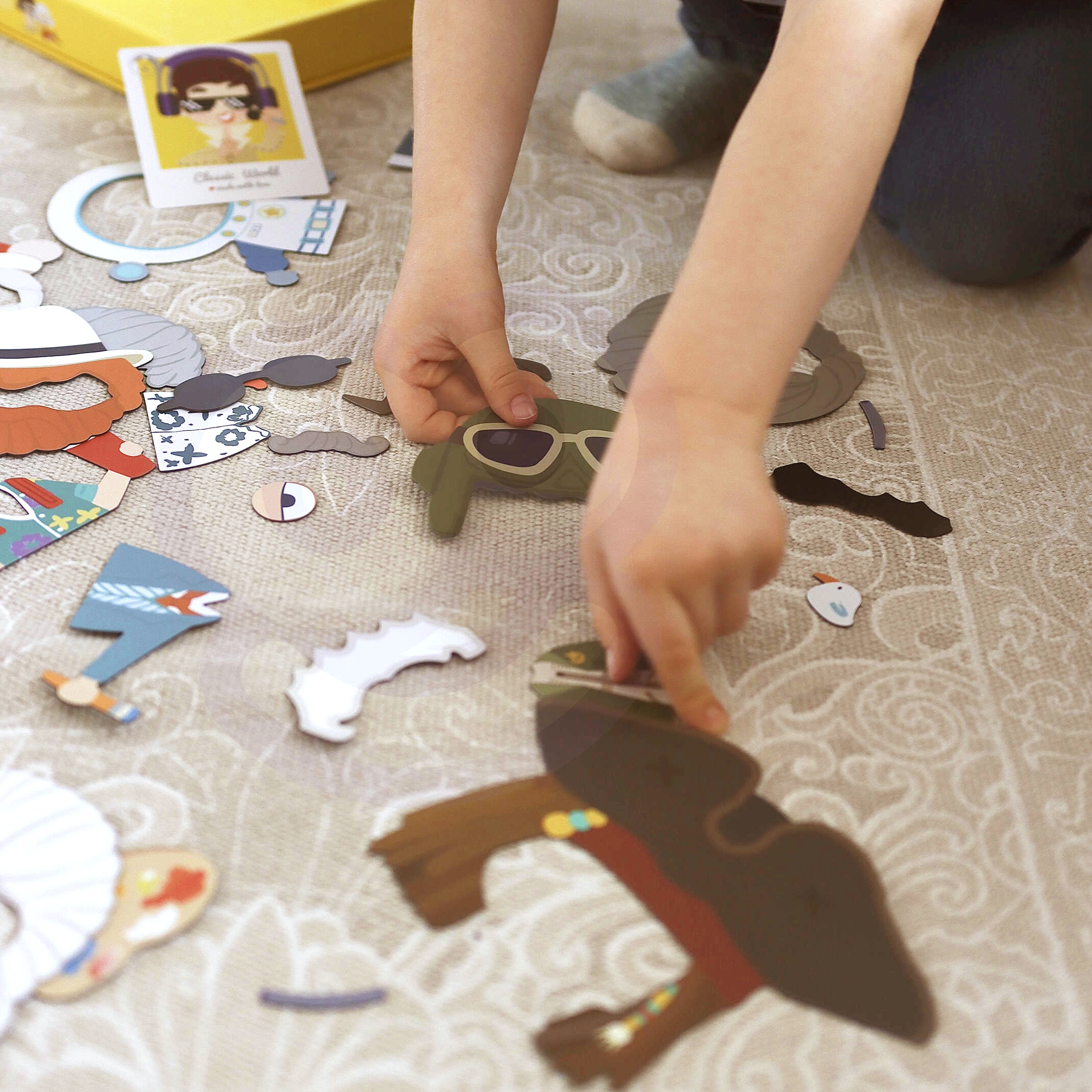 Komplekt sisaldab magnetilise tahvliga karpi, 32 magnetilist elementi nagu soengud, habemed, riided ja aksessuaarid ning 8 kaarti poiste kostüümide mustritega. See on ideaalne reisikaaslane või mängukaaslane vanaema juures.
