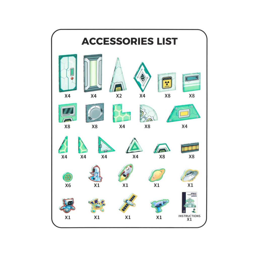 Magnetklotside komplekt on ideaalne väikestele konstruktoritele, pakkudes võimalust luua keerukaid ja loomingulisi kosmoseehitisi. Klotsid ühenduvad omavahel tugevalt, võimaldades lastel luua stabiilseid ja muljetavaldavaid konstruktsioone.