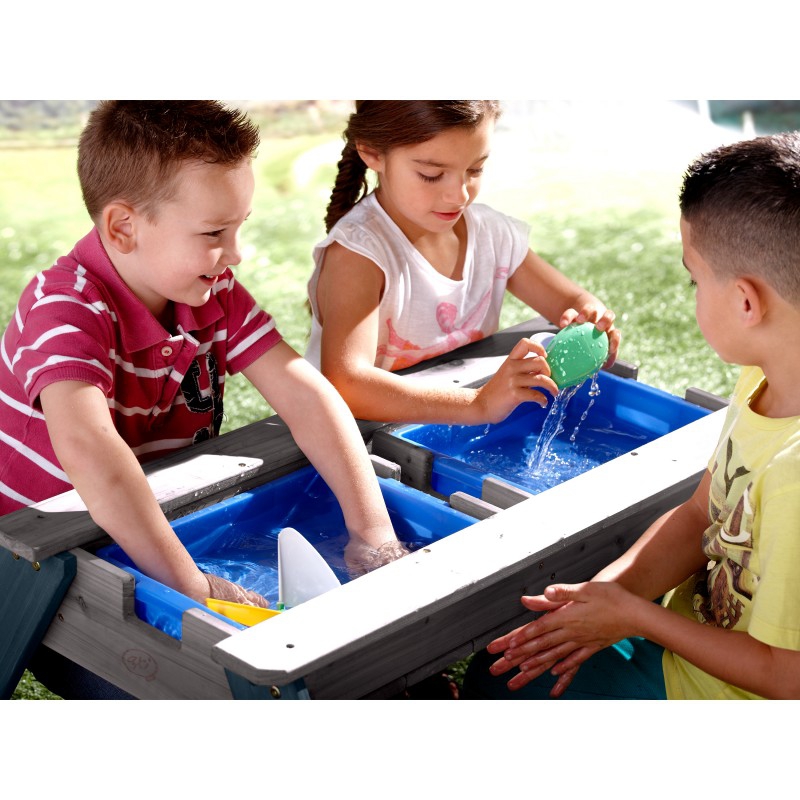 Kokkuvõttes on see mitmekülgne laud suurepärane valik, mis pakub lastele lõputult mänguvõimalusi ja arendab nende loovust. Kaasasolev päikesevari tagab, et lapsed saavad mängida ohutult ka päikese käes.