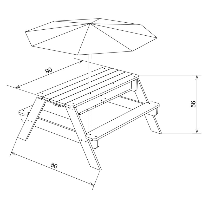 See mitmekülgne laste piknikulaud pakub lastele rõõmu ja loovust, olles ideaalne koht mängimiseks ja joonistamiseks. Kui rahulik istumine muutub igavaks, saab laua kergesti muuta liiva- või veemängualaks. Kaasasolev päikesevari kaitseb lapsi päikese eest, võimaldades mängida ka kuumadel päevadel.