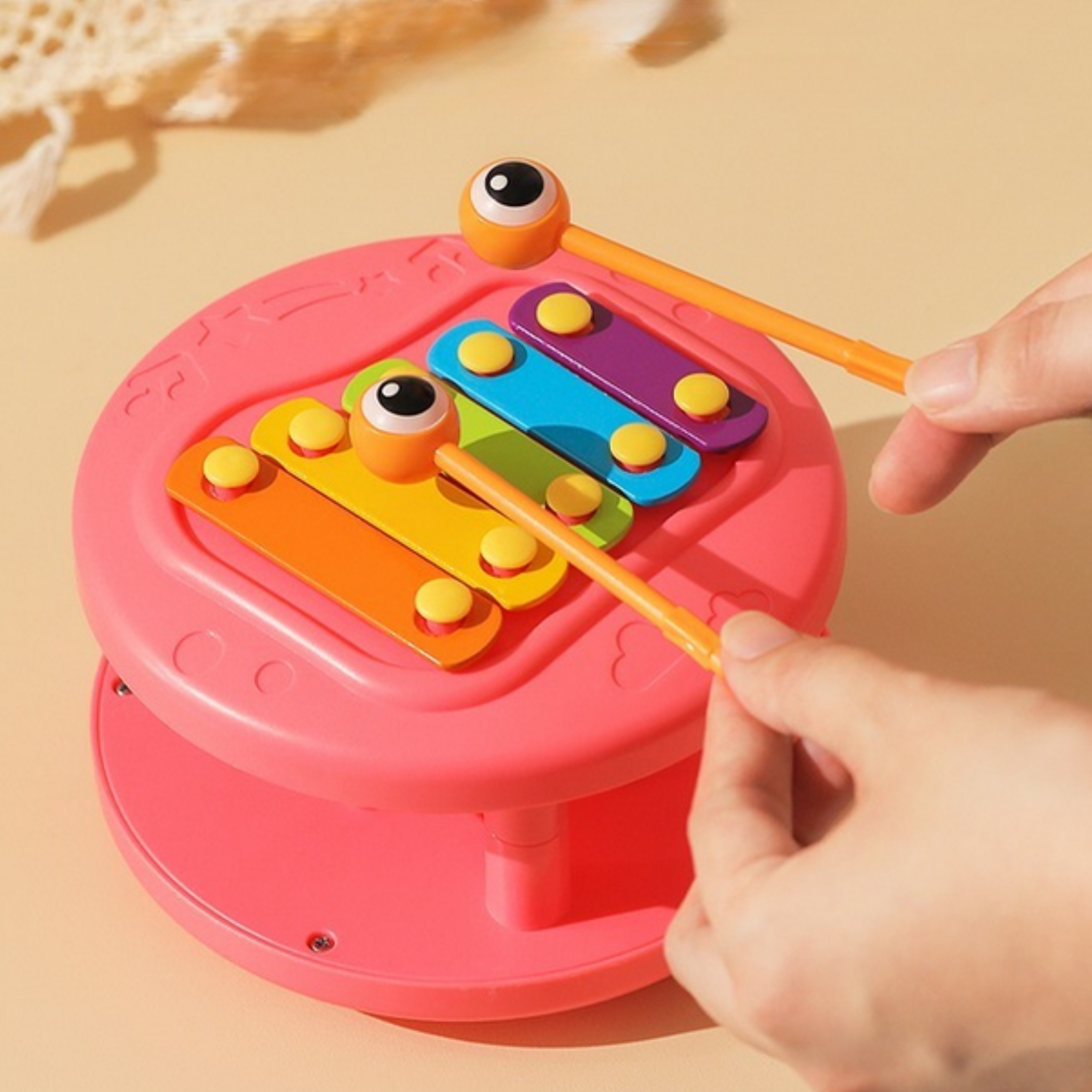 See mitmekülgne mänguasi on loodud stimuleerima laste kujutlusvõimet ja pakkuma tundide viisi lõbusat mänguaega. Erksad värvid parandavad laste visuaalset tajumist ja esteetilist tunnetust. Mänguasi võimaldab erinevaid mängimis- ja õppimisviise, arendades samal ajal kuulmist ja koordinatsiooni.