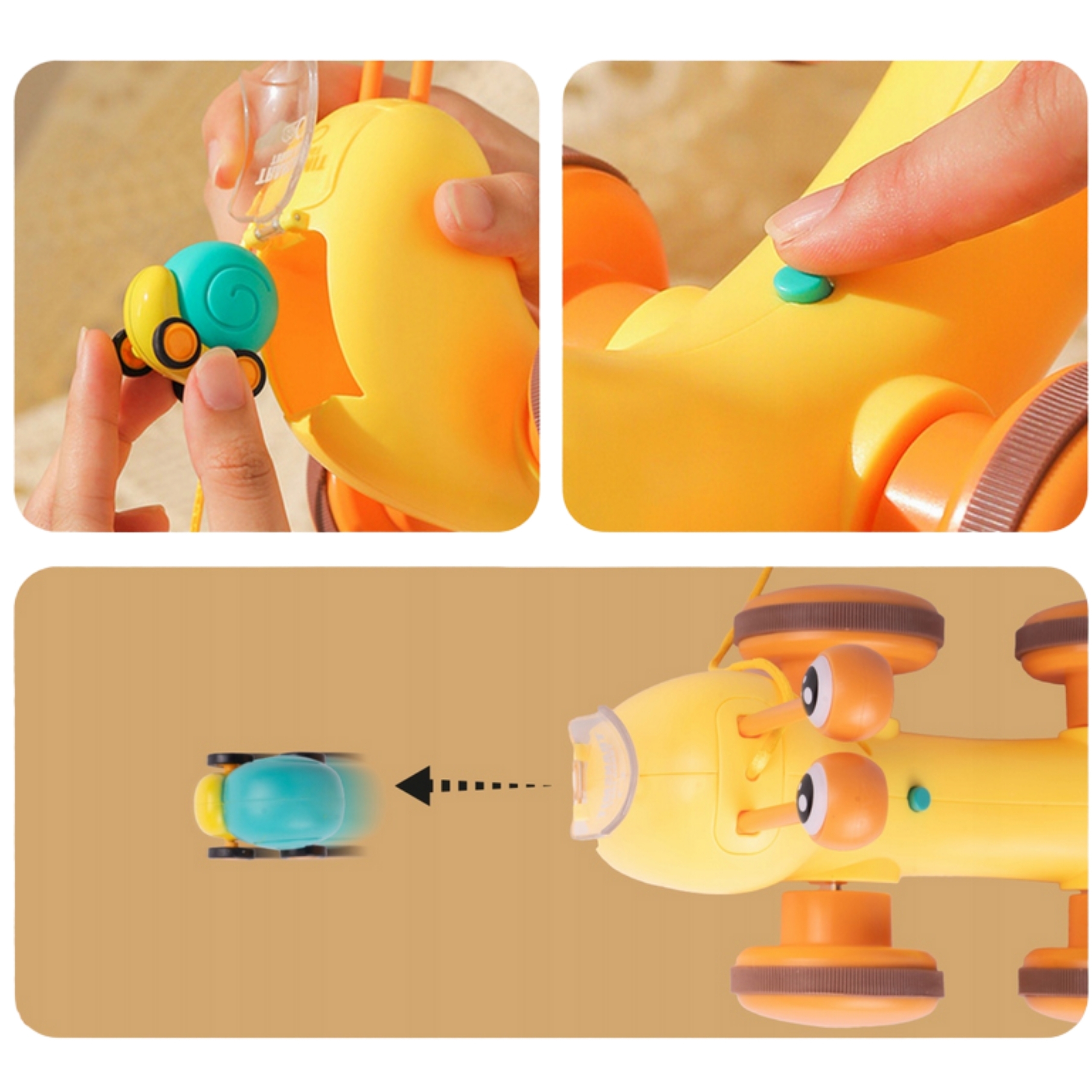 Mänguasi on mõeldud lastele alates 18. elukuust ning selle kasutamine on lihtne ja intuitiivne. Lapsed saavad mänguasja tõmmata, lükata või kasutada selle muusikalisi omadusi, et arendada oma kuulmis- ja koordinatsioonivõimeid. Vanemad saavad koos lastega mängida, vaadates, kuidas nad rõõmustavad ja naeravad mänguasja liikumise üle.