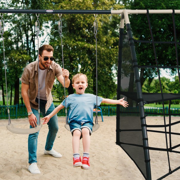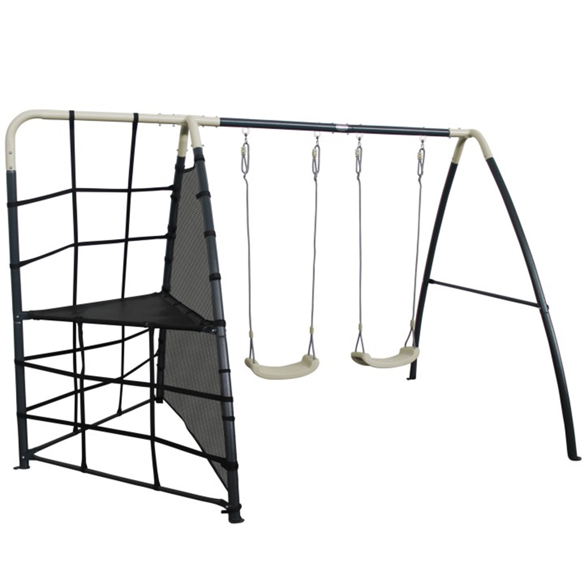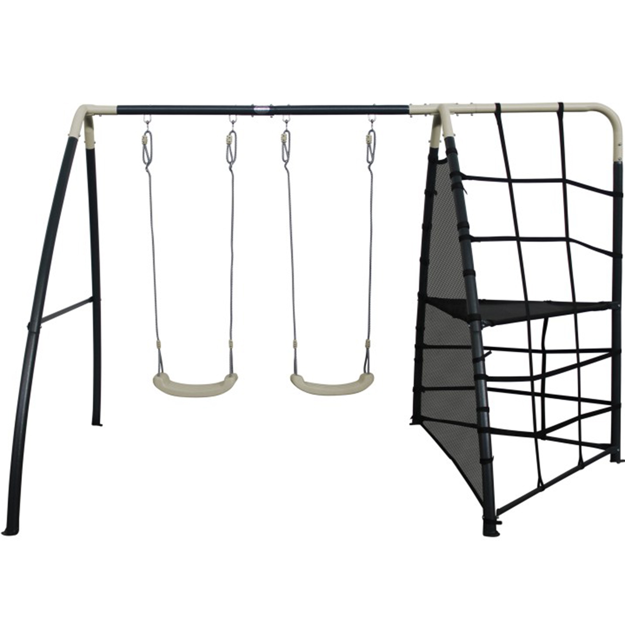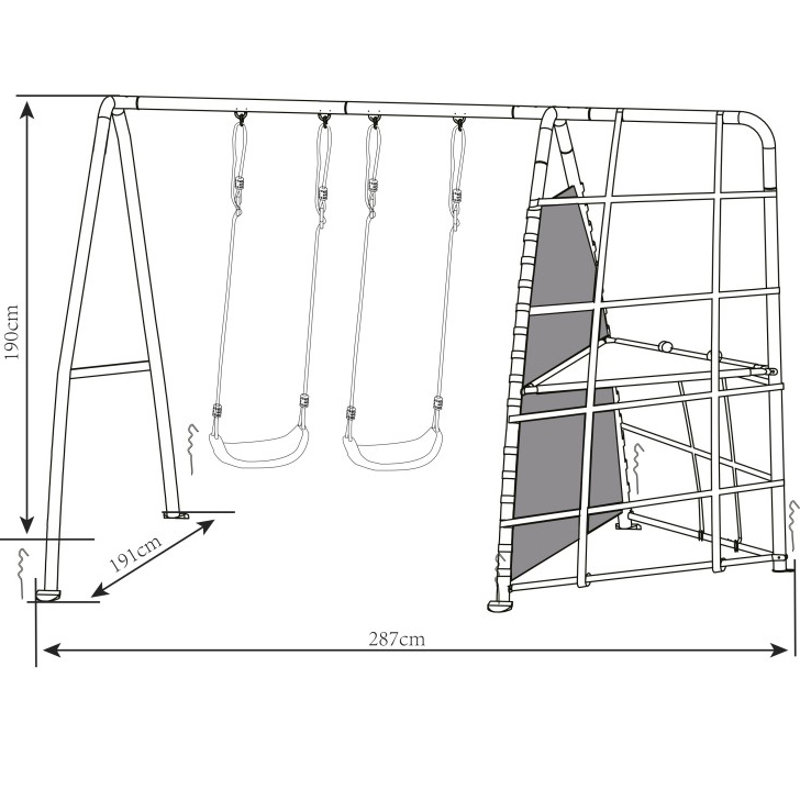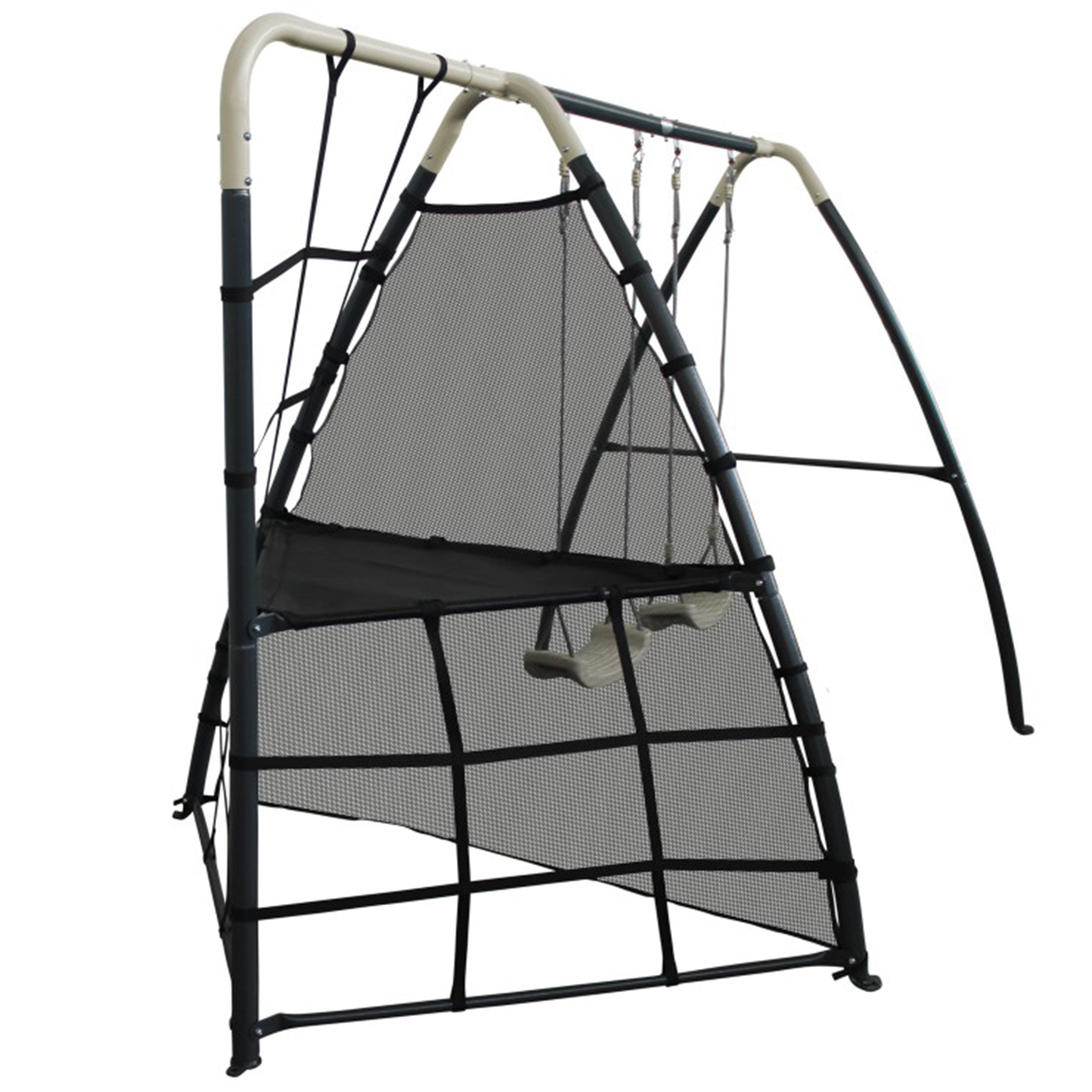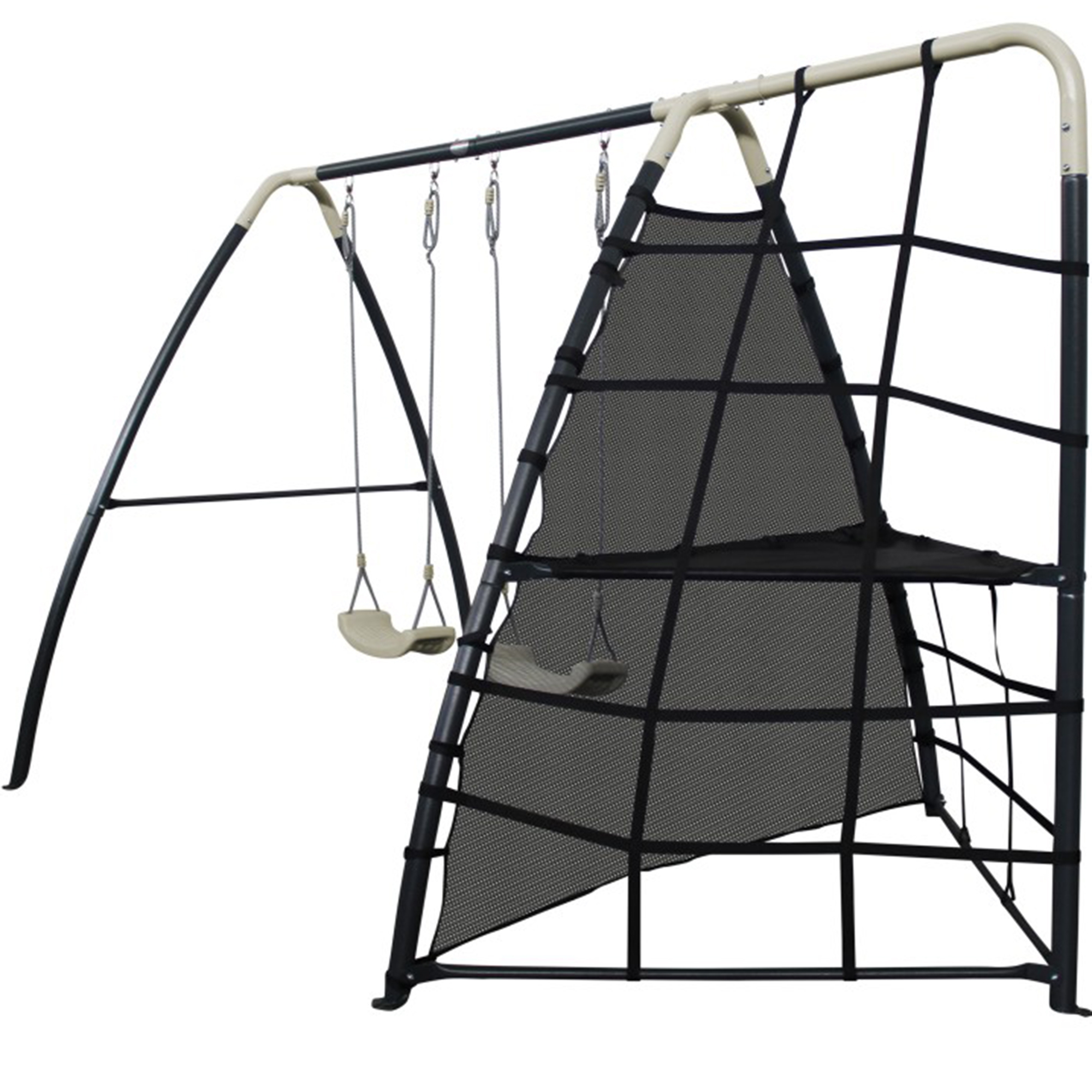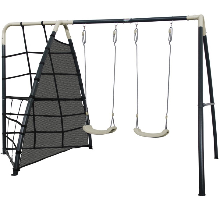 See mängukomplekt on suurepärane valik, kuna ühendab endas kiikumise ja ronimise, pakkudes lastele mitmekülgset liikumis- ja mänguvõimalust. Tugev terasraam tagab vastupidavuse ja ilmastikukindluse, samas kui hooldusvaba disain säästab teie aega ja energiat.