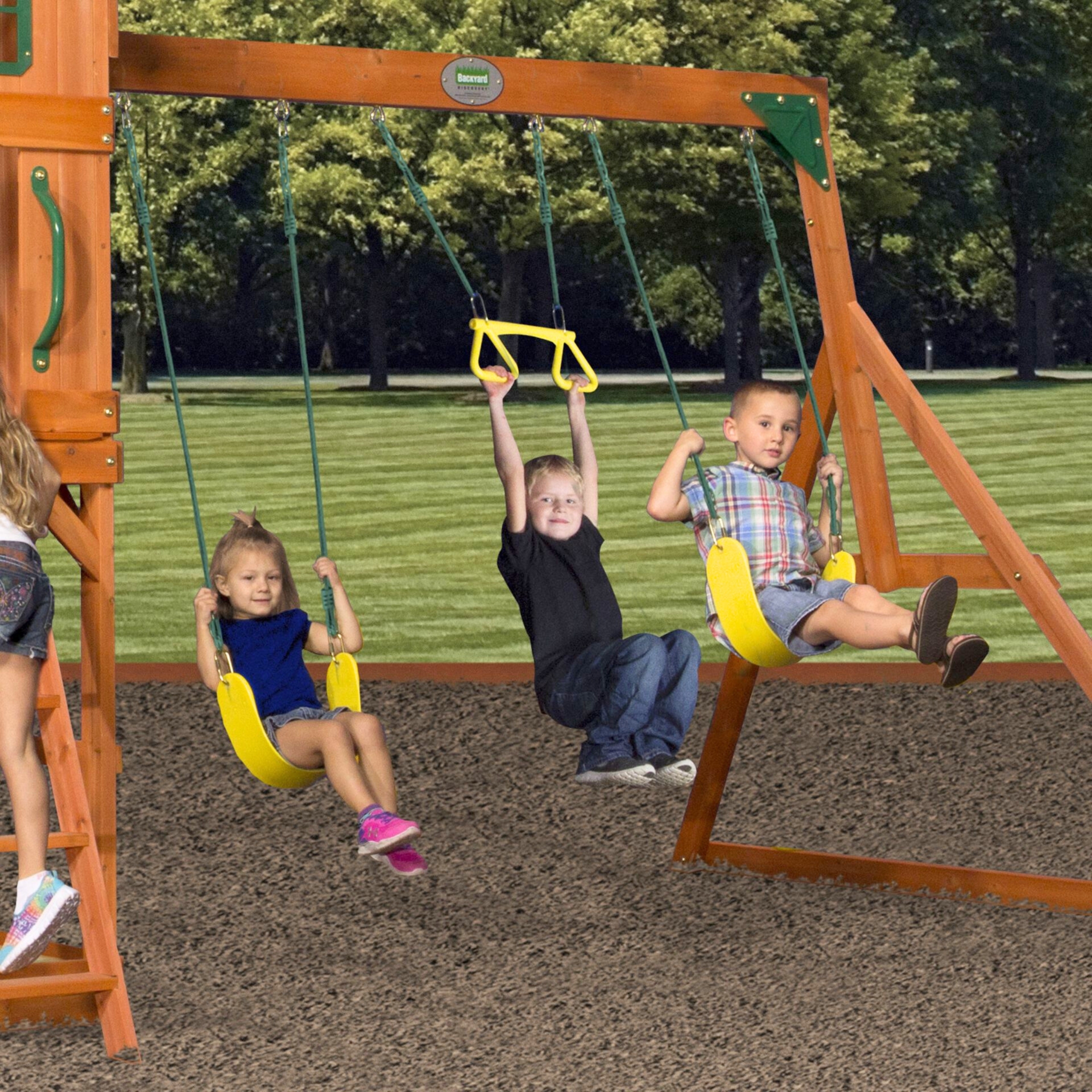 Koos kolme kiigega, millest kaks on üksikutele ja üks kahele lapsele, on mänguväljak tõeline rõõmuallikas. Alumisel tasandil asuv liivakast ja baarilaud pakuvad täiendavaid mänguvõimalusi.