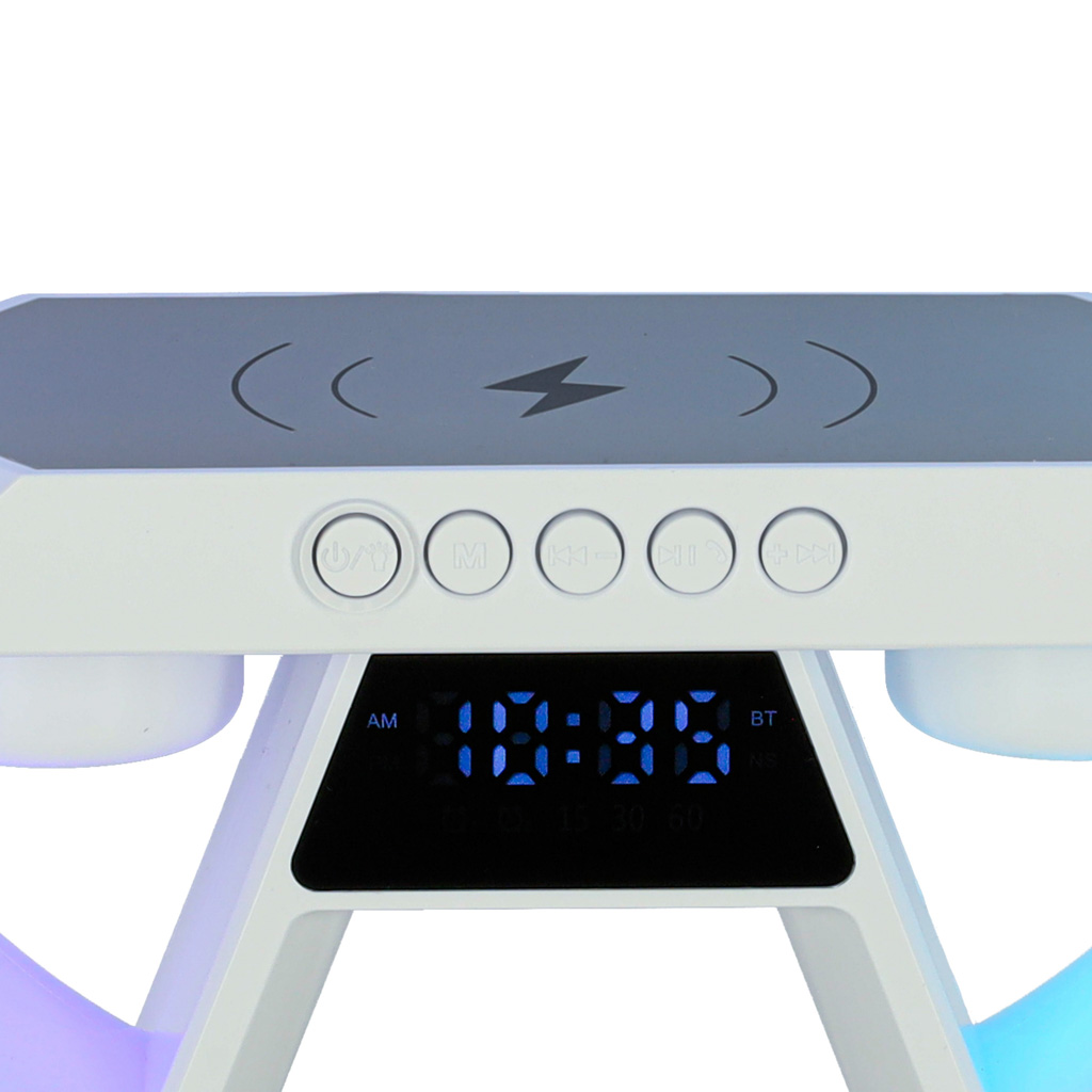 See kaasaegne öölamp on ideaalne lahendus, mis ühendab endas mitmeid funktsioone, sealhulgas juhtmevaba laadija, kõlar, raadio, lamp ja kell. Kompaktne disain säästab ruumi ja sobib suurepäraselt väikestesse ruumidesse. Lihtne kasutada tänu intuitiivsetele nuppudele, mis võimaldavad kiiret juurdepääsu kõikidele funktsioonidele.