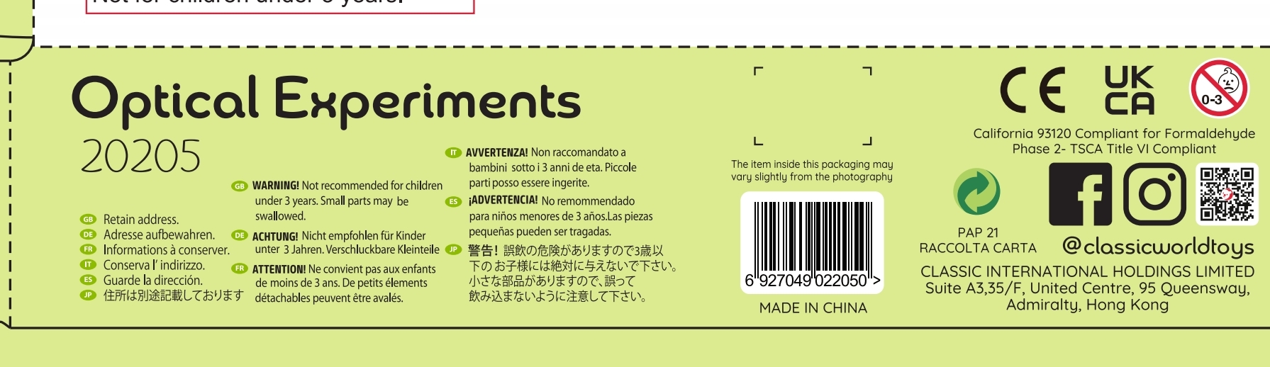 See komplekt on ideaalne vahend noorte teadushuviliste jaoks, kes soovivad avastada optiliste illusioonide maailma. Arendades samal ajal loovust ja intellekti, pakub see mänguasi lõputuid tunde lõbu ja õppimist. Avasta ja naudi teaduse ilu läbi mängu!