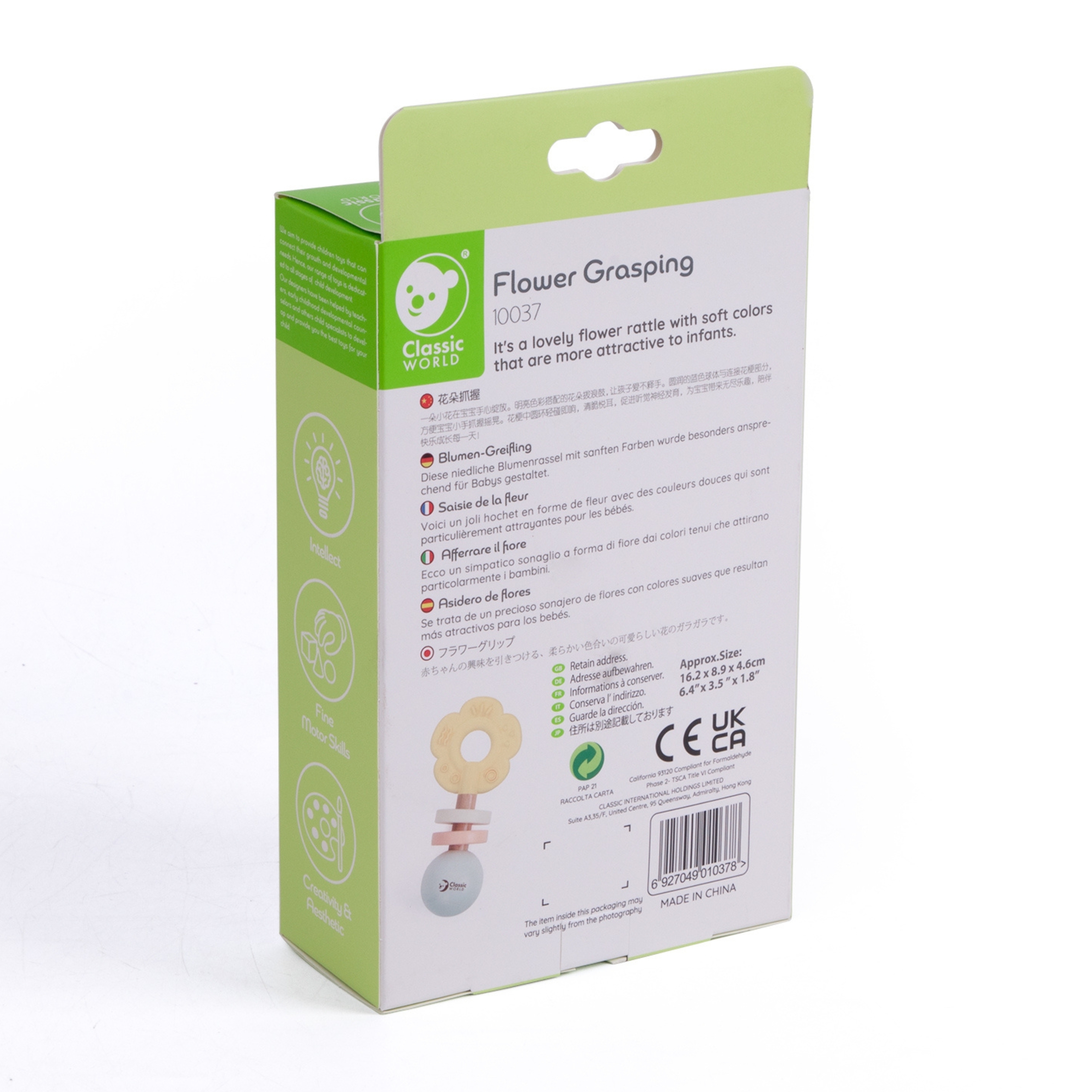 Kokkuvõttes on pastelne lillekujuline beebikõristi suurepärane valik, et toetada beebi varajast arengut. See on turvaline, vastupidav ja visuaalselt köitev mänguasi, mis aitab arendada lapse meeli ja koordinatsiooni.