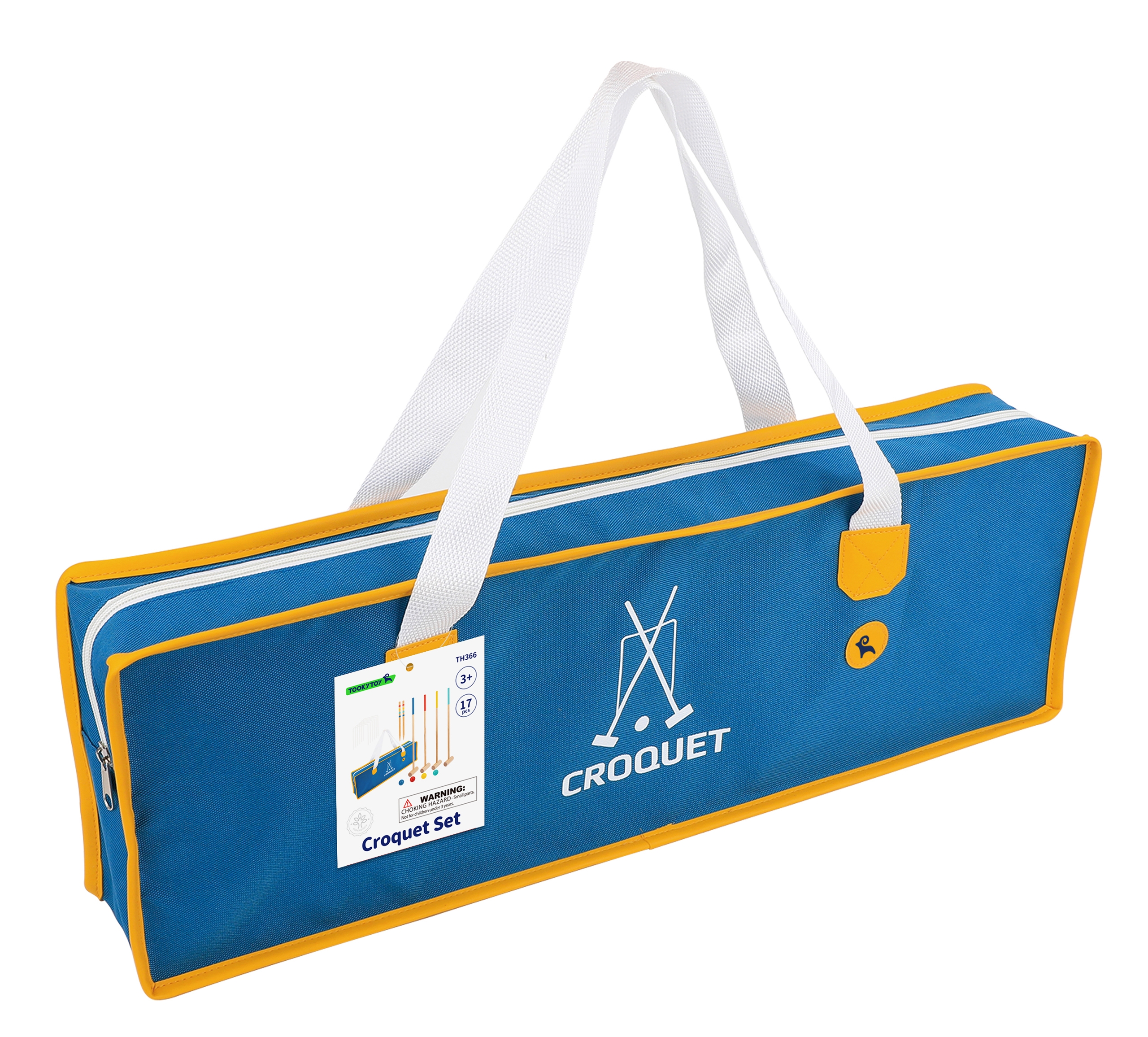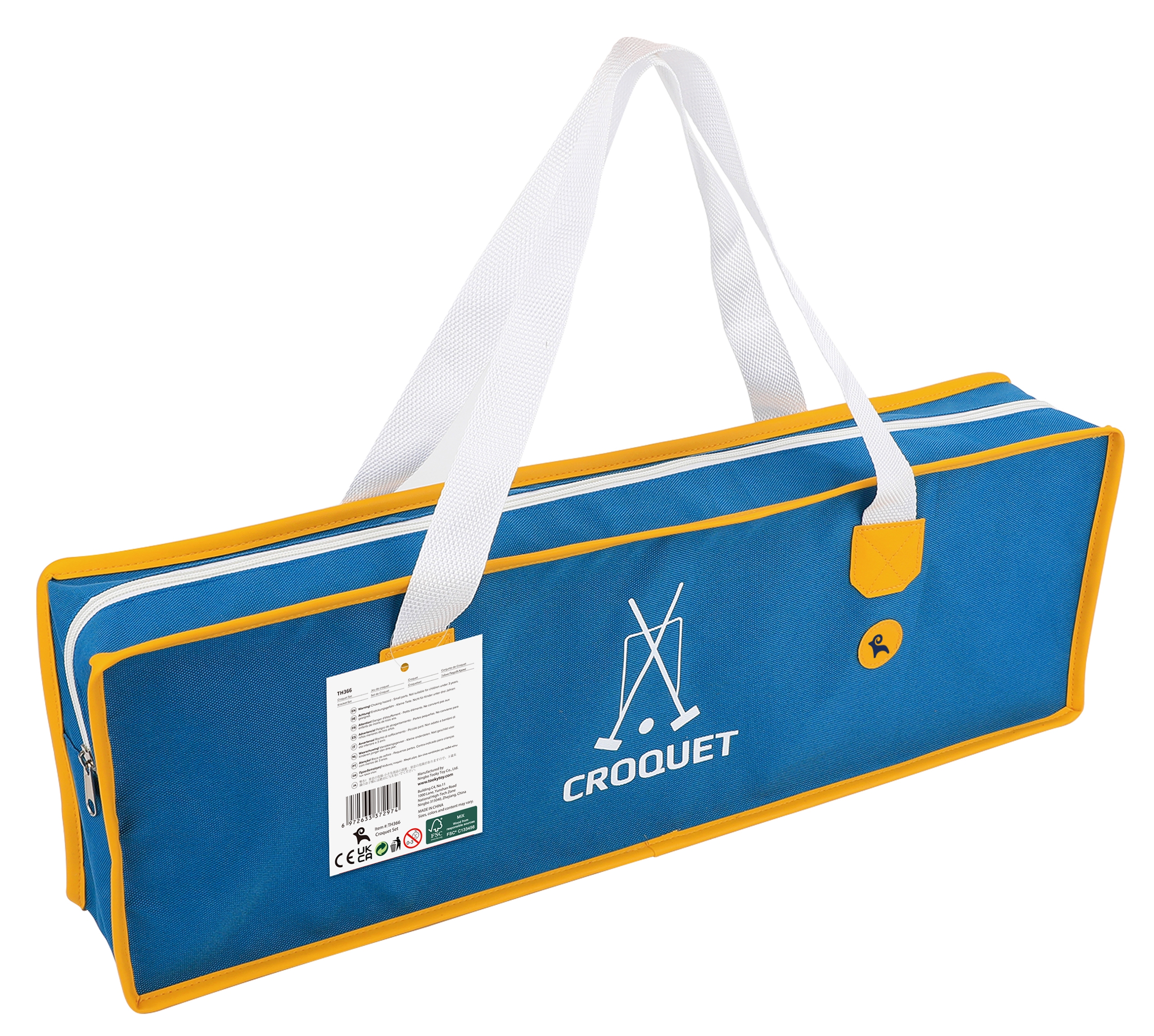 - Komplekt sisaldab: 4 vasarat, 6 väravat, 4 palli, 4 pulka ja kotti asjade hoidmiseks.