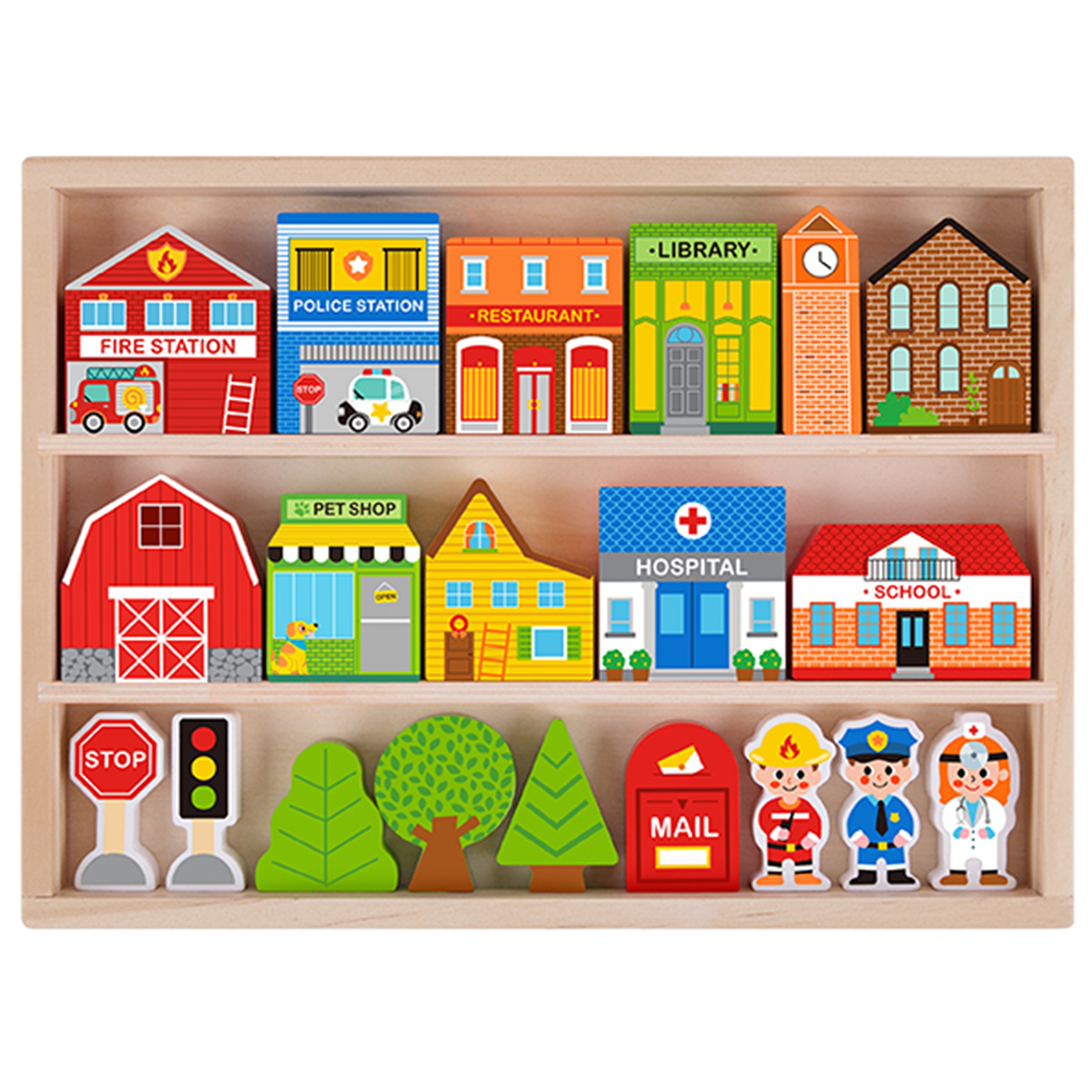 Loo oma unikaalne linn selle erilise puidust mängukomplektiga! Komplektis on 21 hoolikalt valmistatud elementi, mis avavad teie lapsele lõputud võimalused loo jutustamiseks ja loovuseks.