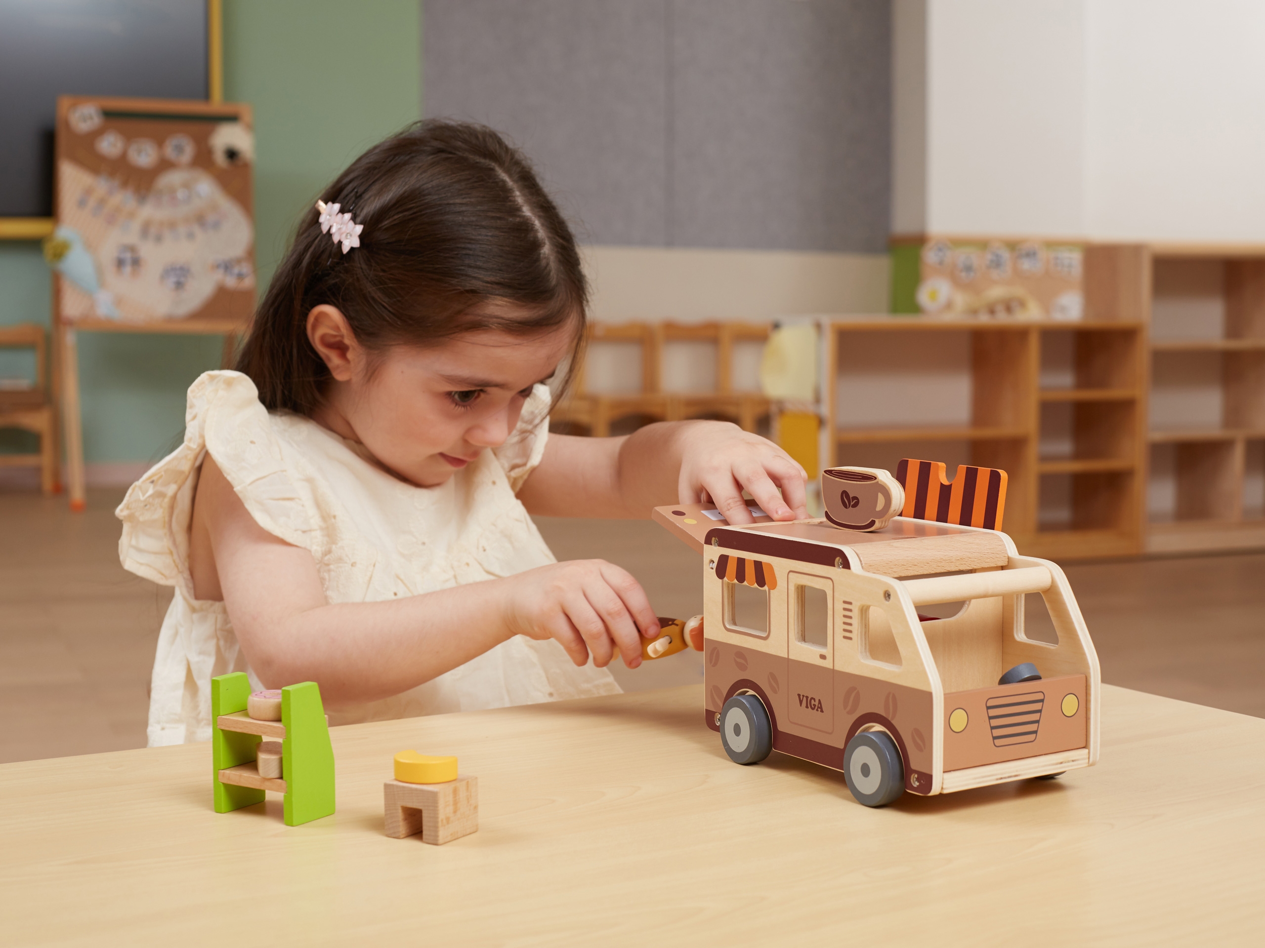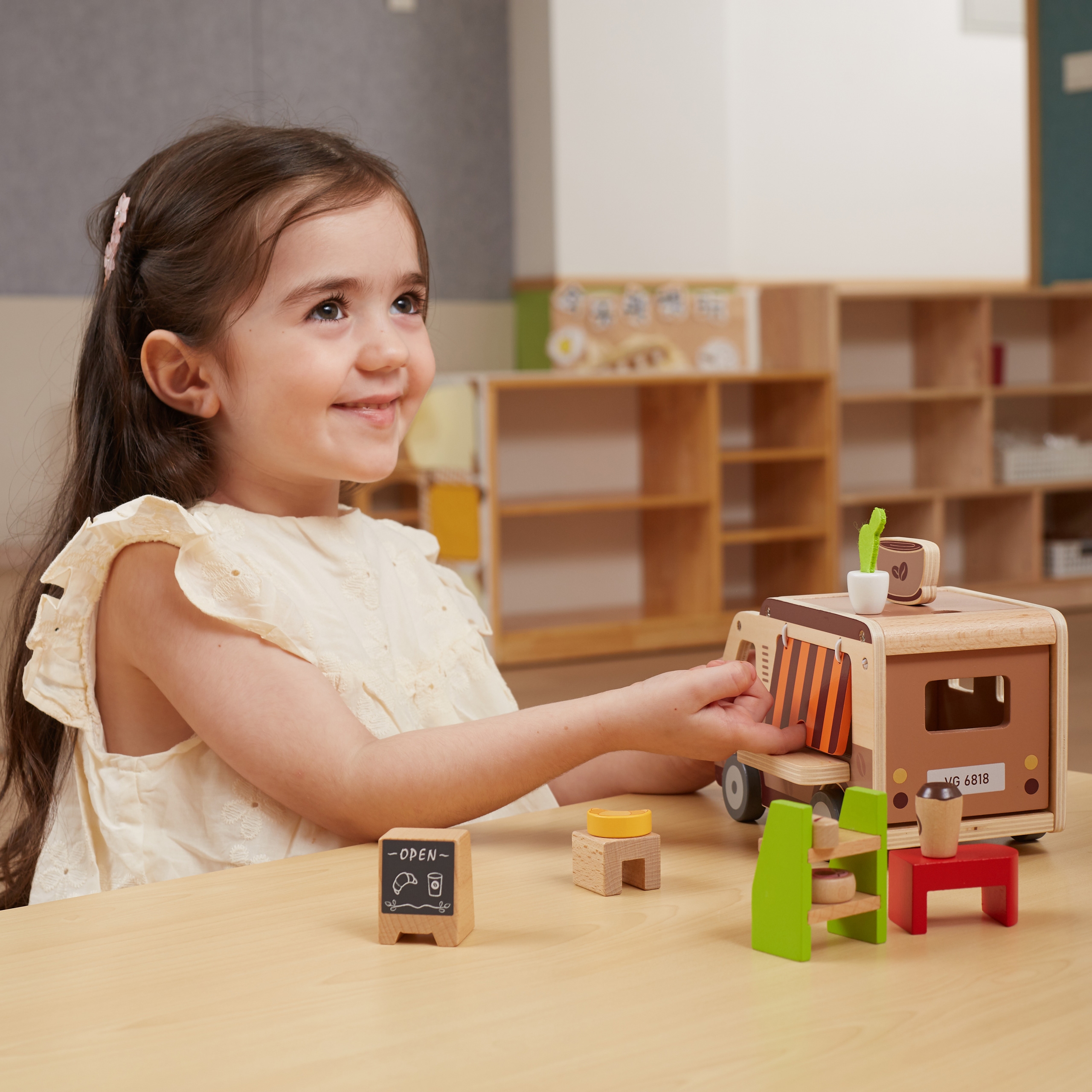 See mänguasi aitab arendada lapse silma-käe koordinatsiooni, manuaalseid oskusi, kujutlusvõimet ja loovat mõtlemist. Laps saab kehastuda baristaks, teenindada kliente või luua oma mängustsenaariume, mis on suurepärane võimalus iseseisvuse arendamiseks.