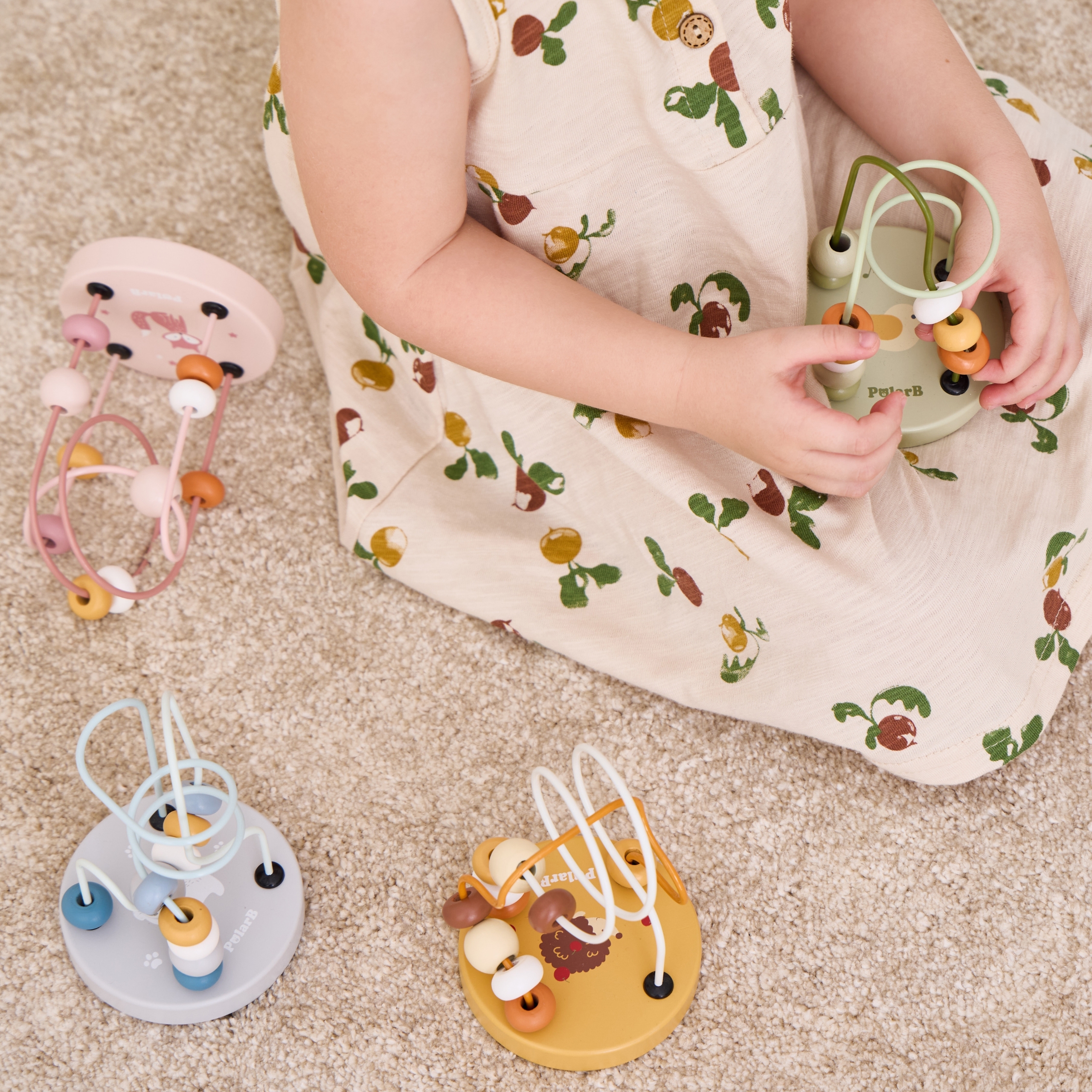 Mänguasja kasutamine on lihtne ja lõbus. Laps saab oma kätega pärleid liigutada, arendades nii oma käelisi oskusi ja koordinatsiooni. Värvilised pärlid ja pildid hoiavad lapse tähelepanu ning pakuvad meelelahutust.