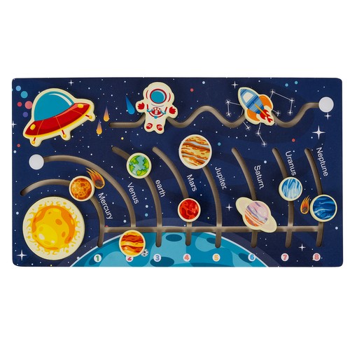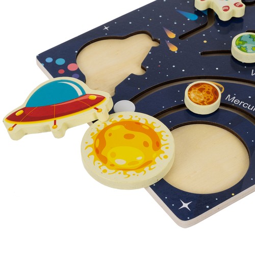 Puidust Päikesesüsteemi pusle on suurepärane vahend, et tutvustada lastele meie galaktikat. Lapsed saavad liikuvate elementide abil õppida planeetide järjestust ja nende nimesid. Lisaks sisaldab pusle kosmosealuseid ja eemaldatavat päikest, mis muudab mängu veelgi põnevamaks.
